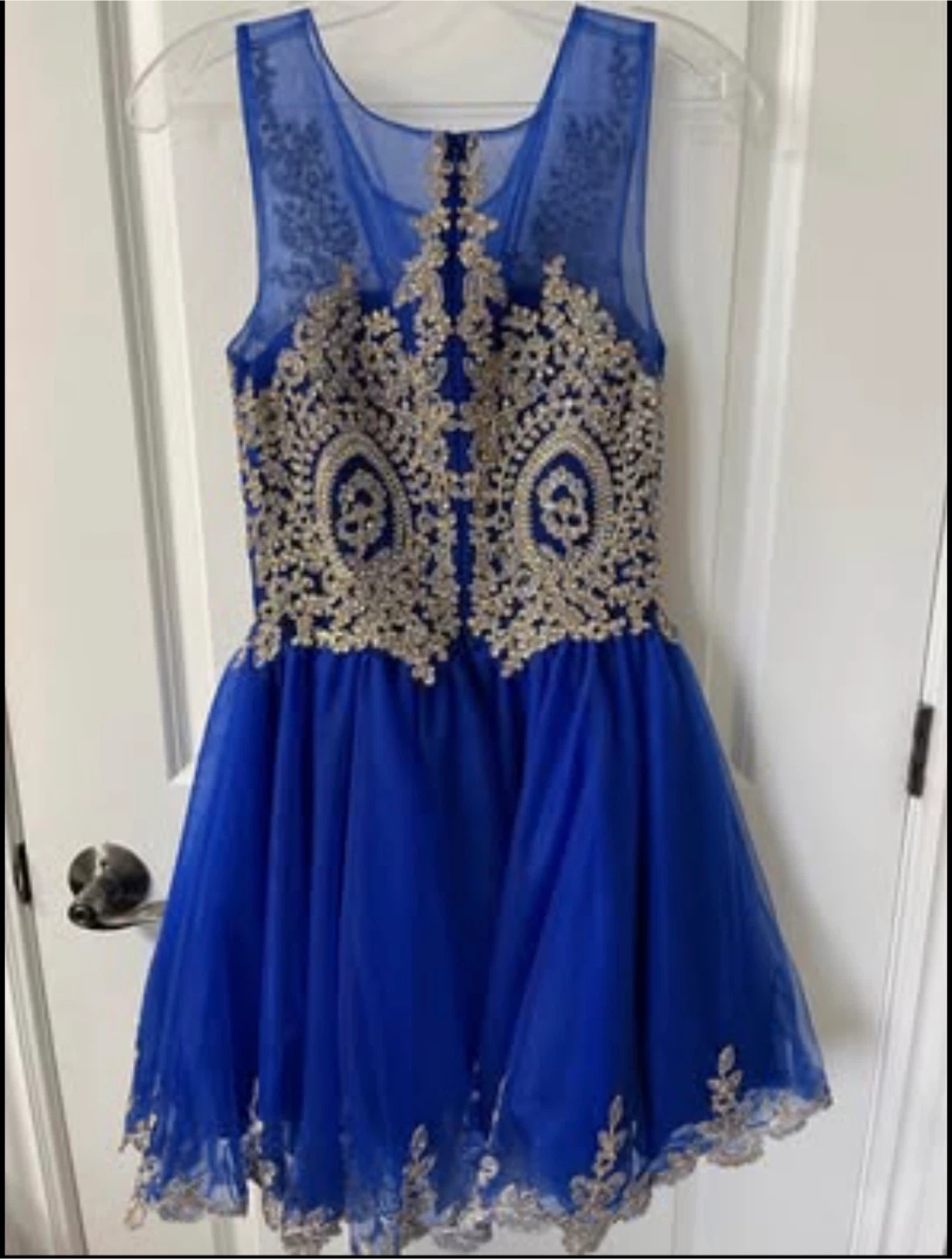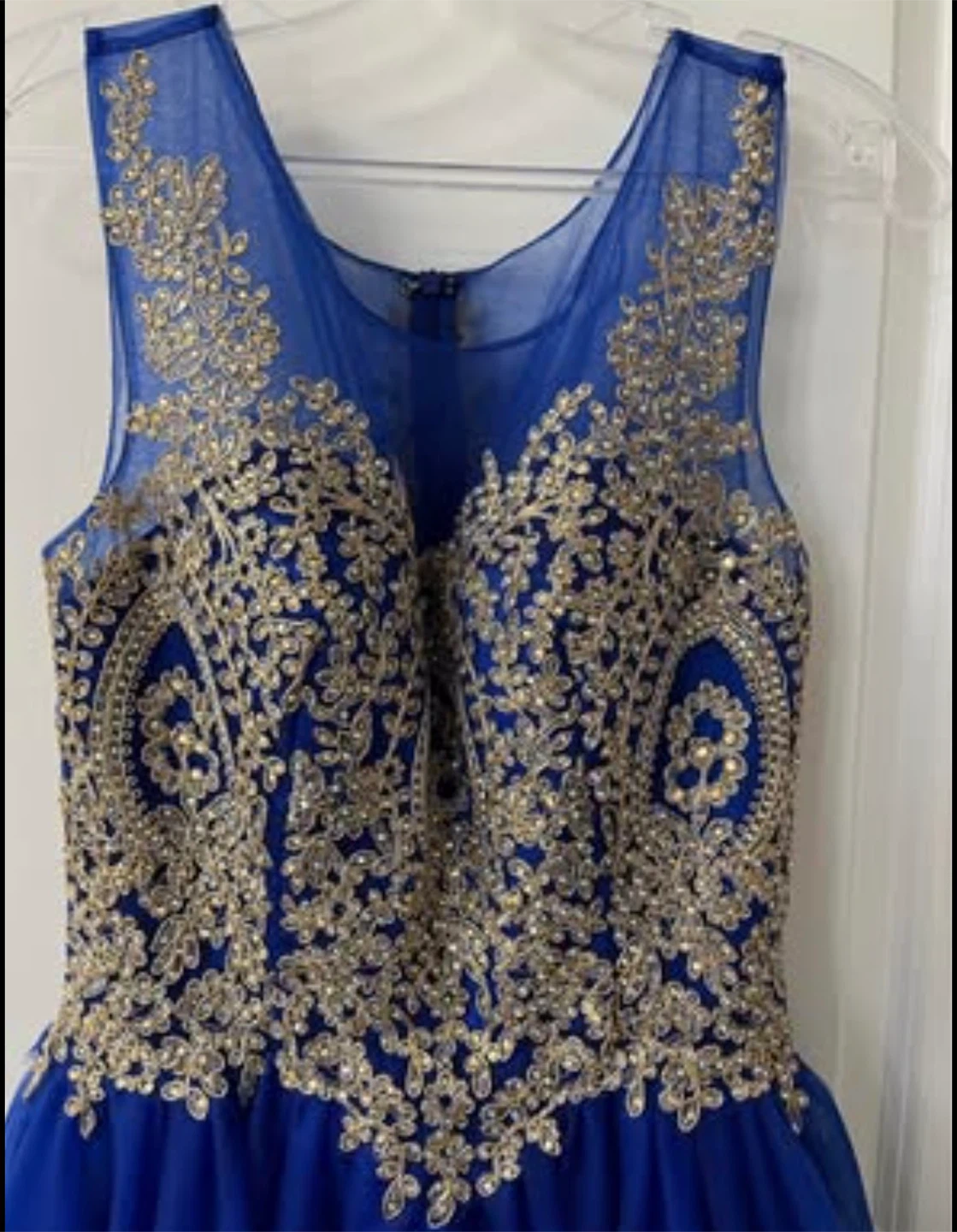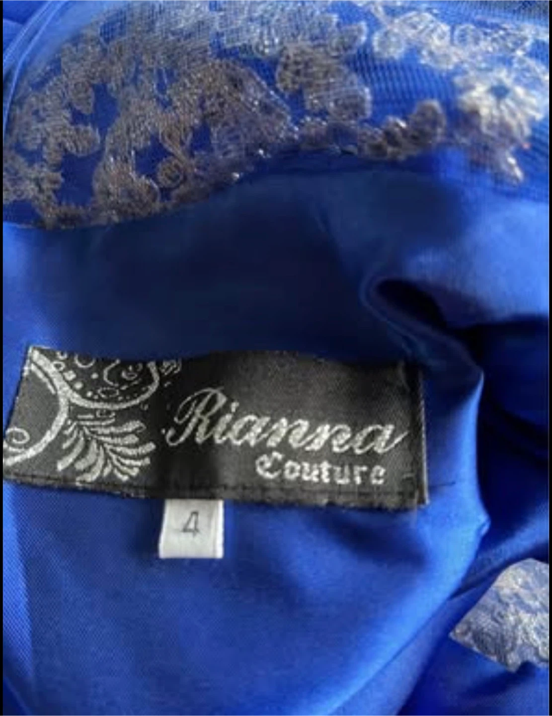 Rianna Couture Blue & Gold Beaded Dress Size 4