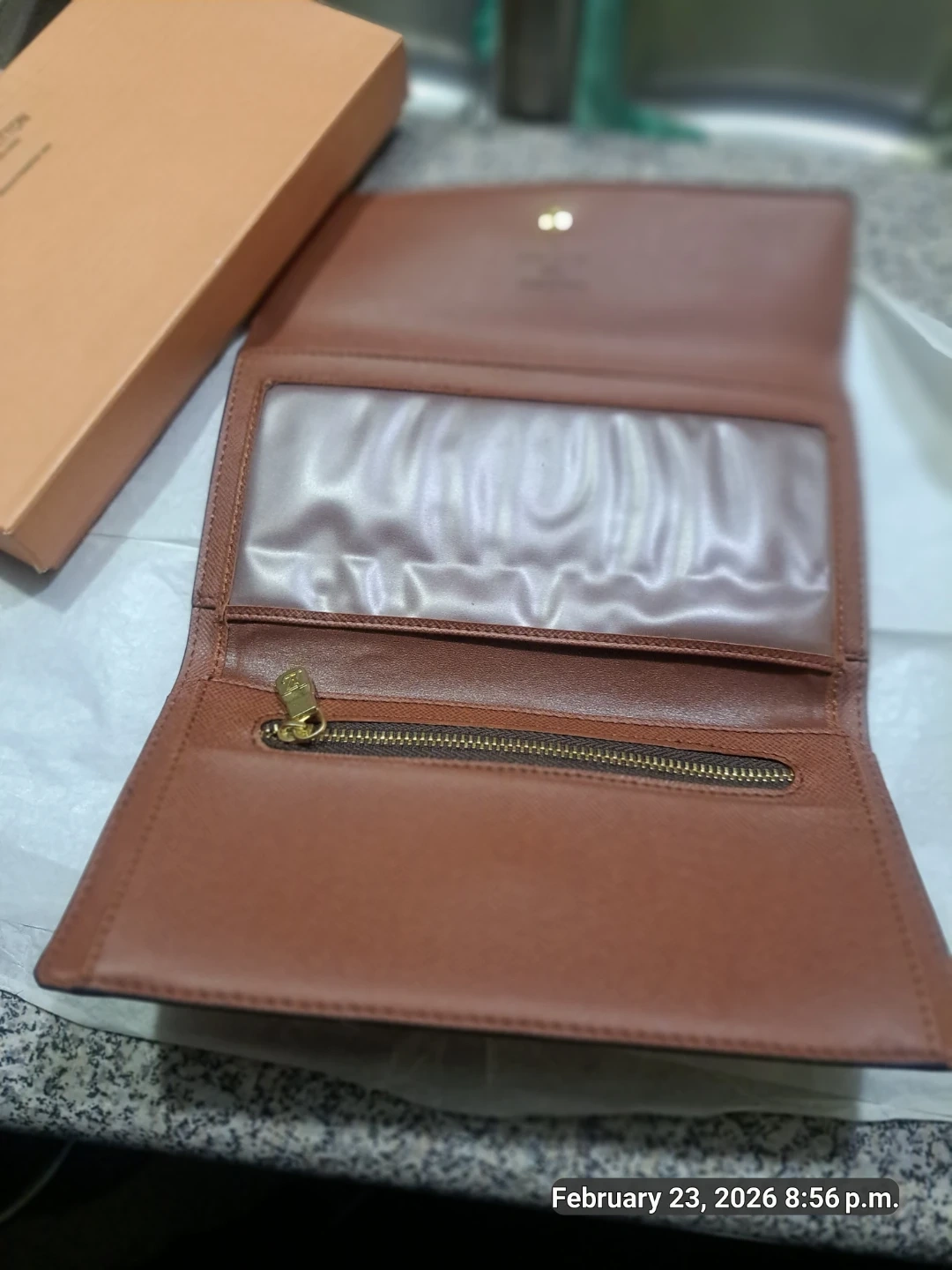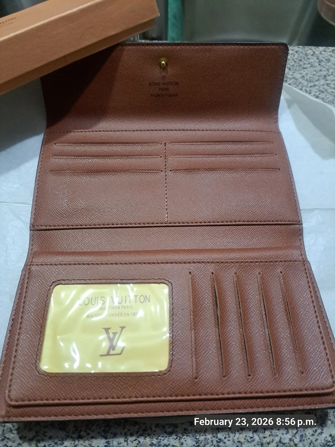 This Louis Vuitton wallet features the iconic monogram canvas. It's made in France and includes a window for identification. Comes with original box.