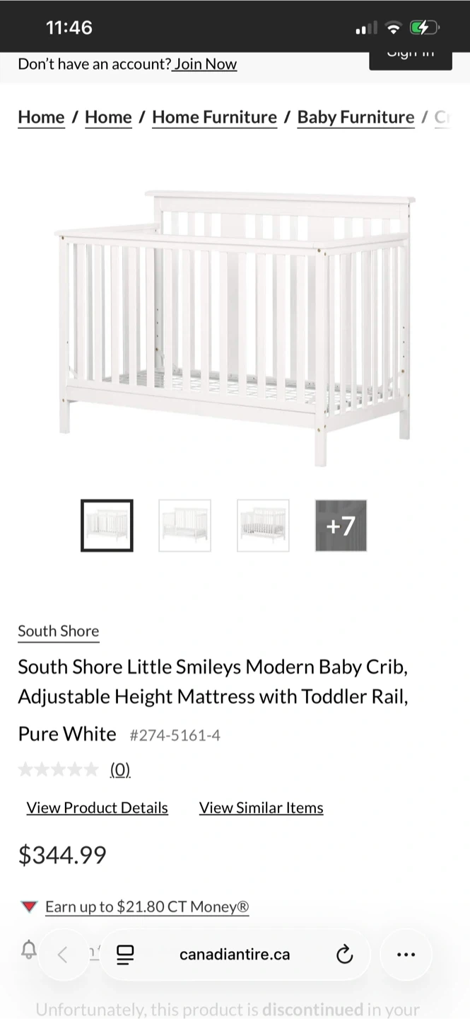 South Shore Little Smileys Modern Baby Crib. Pure white colour. Adjustable height mattress. Includes Mattress. This crib is suitable for babies and toddlers.