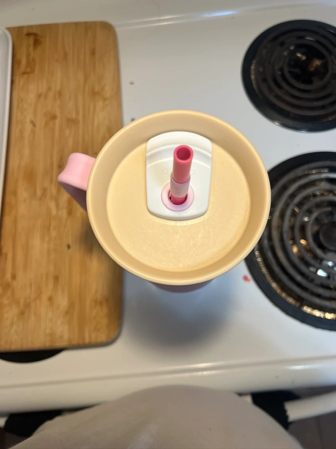 Owala FreeSip 40oz tumbler in purple with a pink handle and straw. It comes with several "Friends" themed charms and straw toppers, all in a clear storage case. Stainless steel construction.