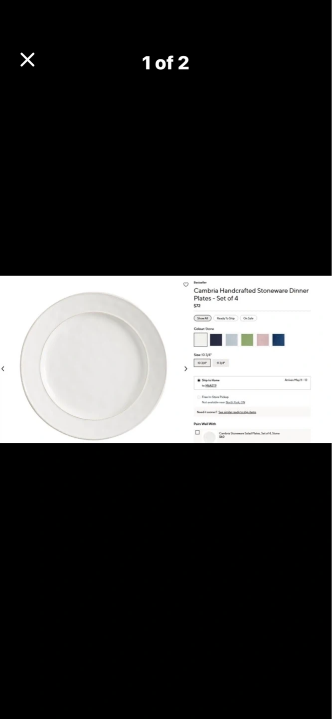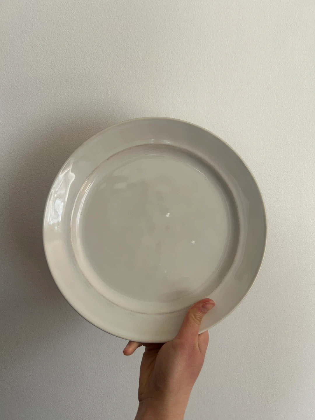 Pottery barn X4 Cambria handcrafted stoneware dinner plate. This plate is 10 3/4 inches in diameter and has a light grey finish. It's made from durable stoneware.