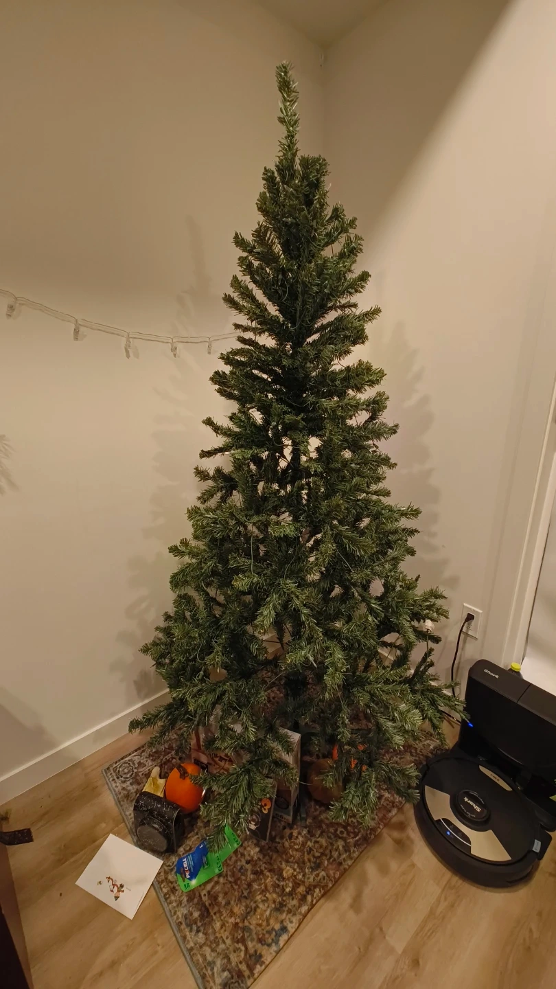 This is a pre-lit artificial Christmas tree. It's ready to be decorated for the holidays. The branches are full and it comes with built-in lights.