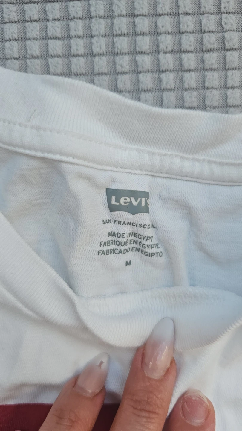 White Levi's t-shirt with the classic red batwing logo on the front. Size medium. Made in Egypt. 12 to 13 years
