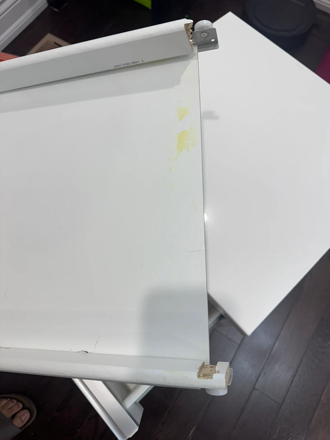 Selling a white IKEA Alex drawer unit. It has three drawers and is perfect for storage. There are some signs of use, as you can see in the photos! The top drawer has a piece cracked as seen in photos