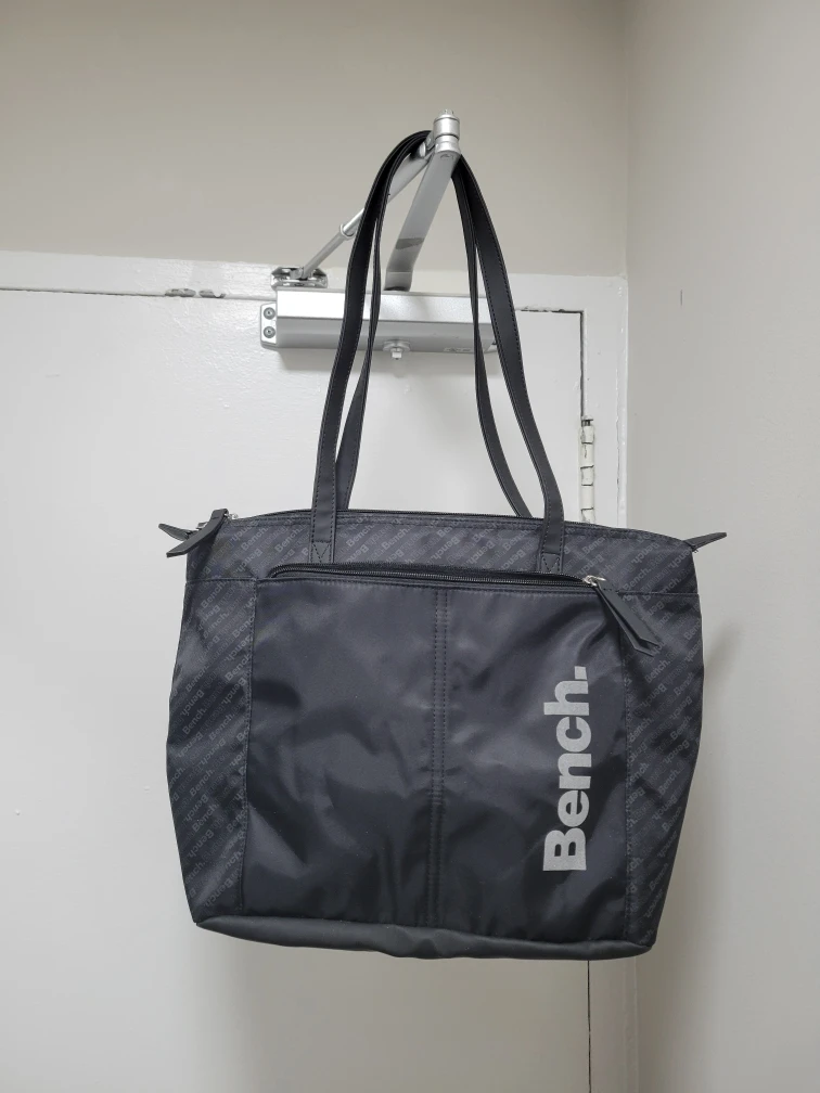 Bench. black tote bag with zipper closure. It's in great condition and ready for a new owner!