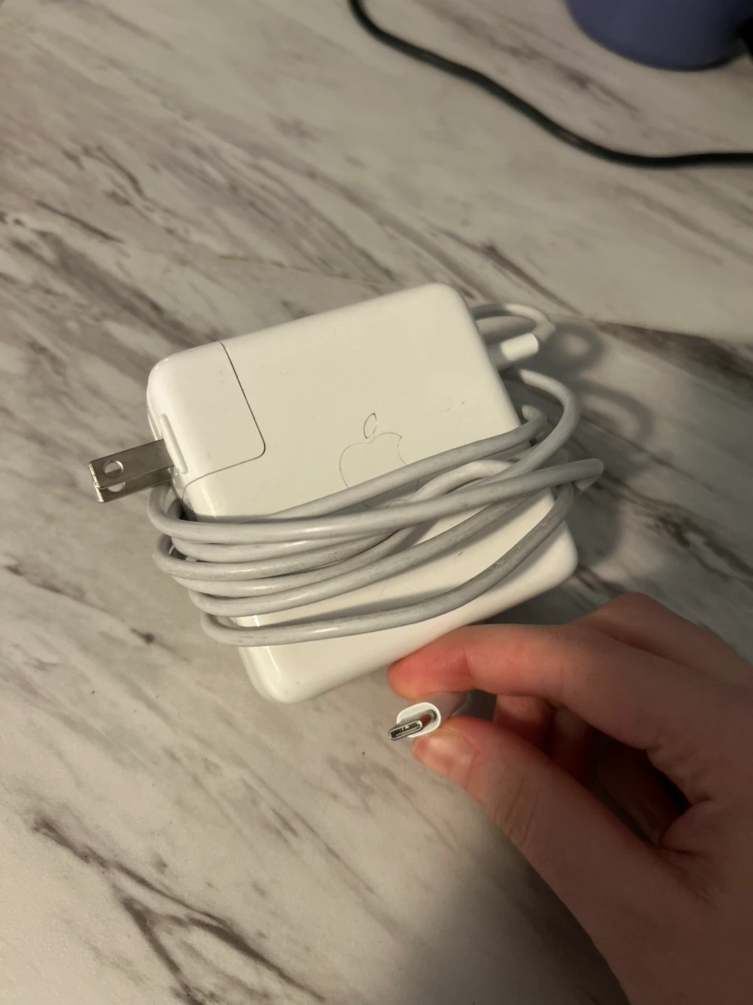 Apple 87W USB-C Power Adapter. Model A1719. It comes with a USB-C cable. This adapter is great for charging your Apple devices (phone, Macbook)