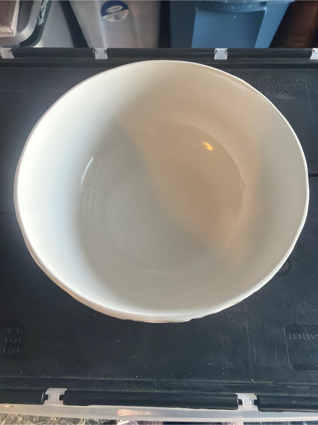 This is a white ceramic serving bowl from Gibson. It's dishwasher, microwave, and oven safe. It's a versatile bowl for serving meals.