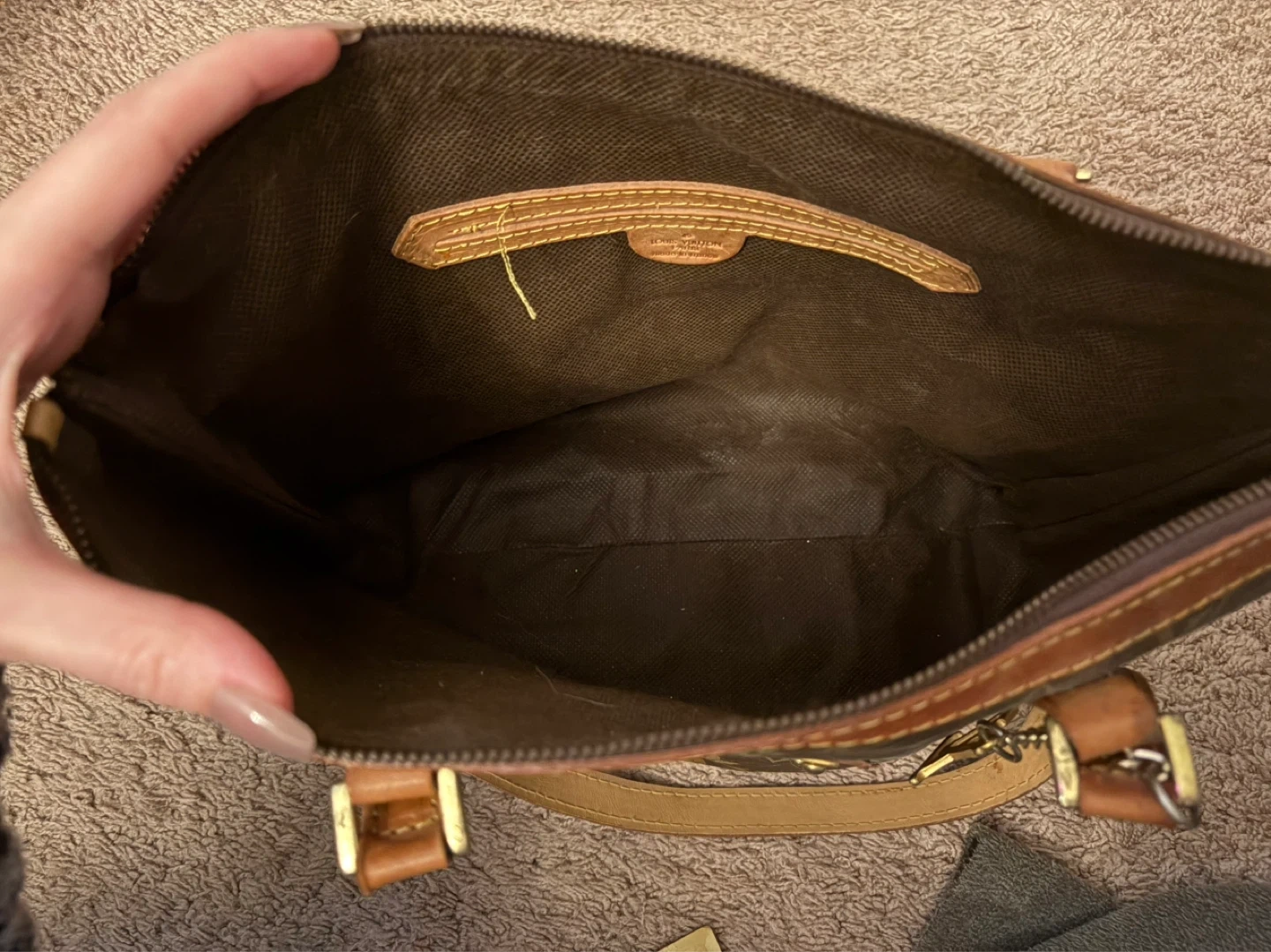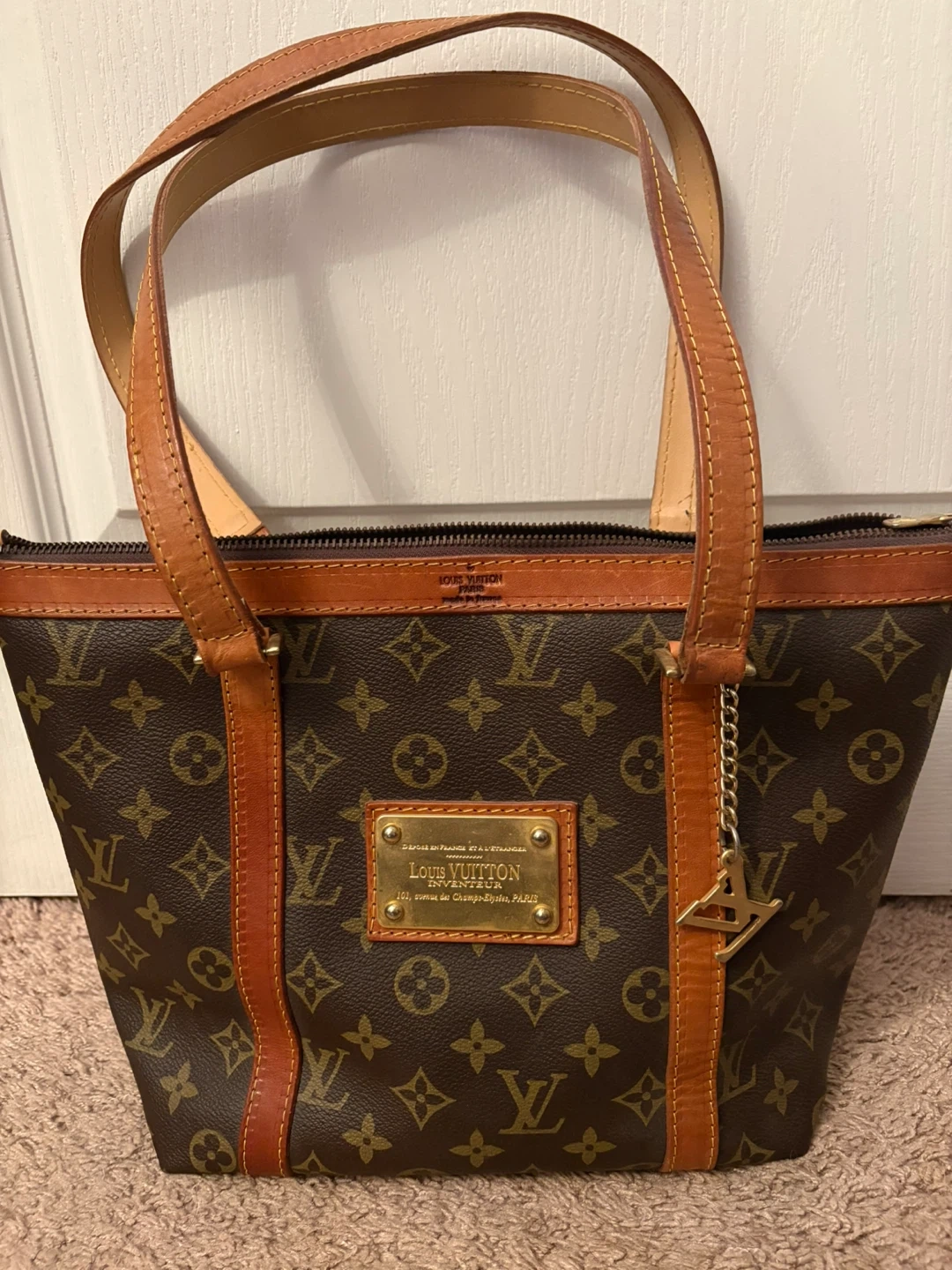 Classic Louis Vuitton tote bag in the iconic monogram canvas. It features leather trim and handles, with a zip-top closure. The interior is lined and has a zippered pocket. This bag is perfect for everyday use, offering ample space for your essentials. Bag is FAUX, but very good quality