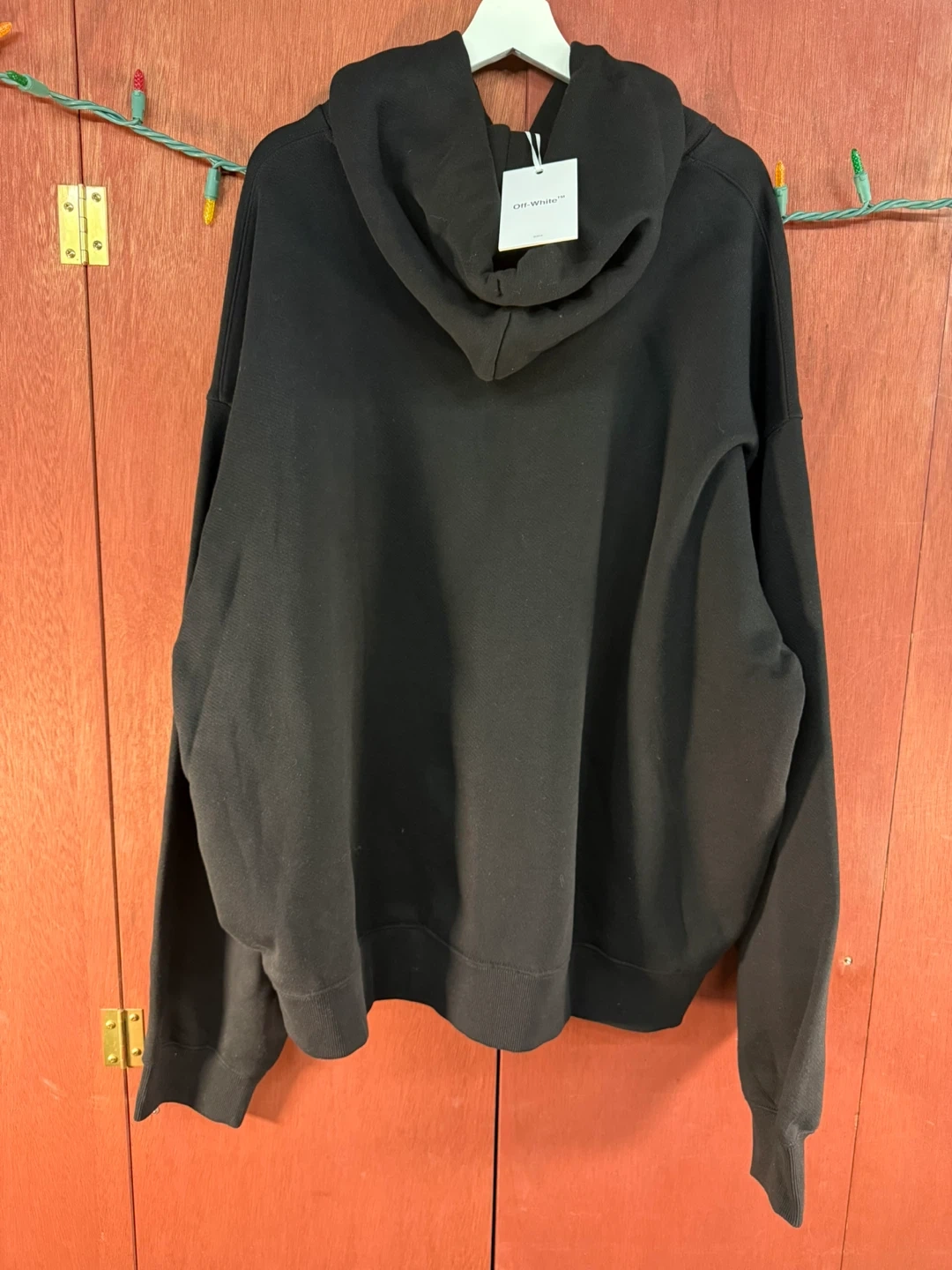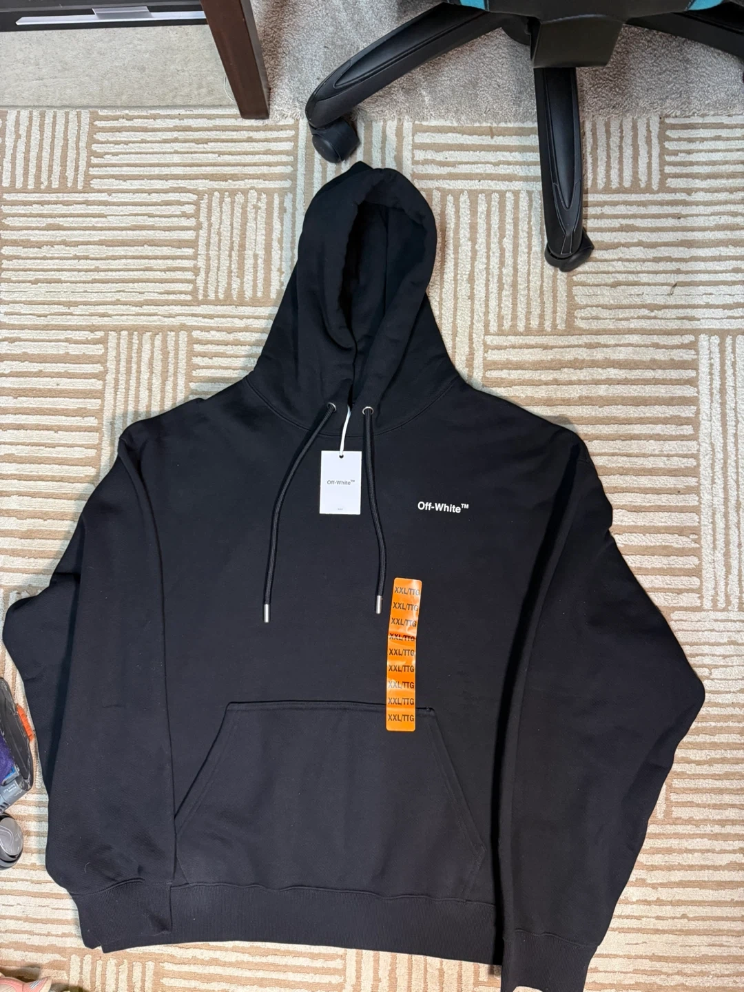 Selling a new Off-White men's pullover oversized fit hoodie in black, size XXL, perfect for a relaxed and stylish look.