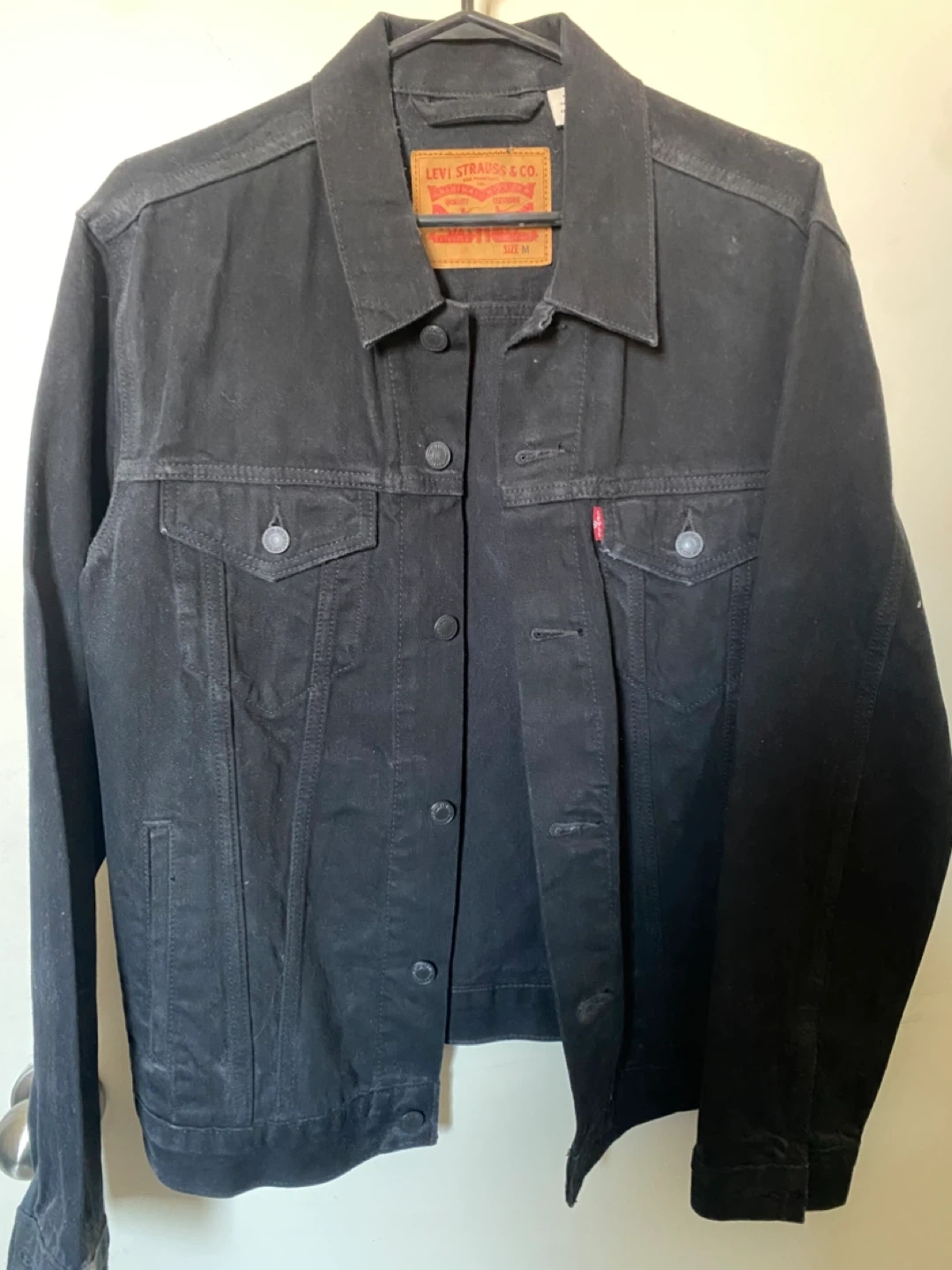 Brand new classic black denim trucker jacket by Levi's. Size medium. No longer has tags. It’s been sitting in my closet ever since I bought it a few years ago. Message for details!