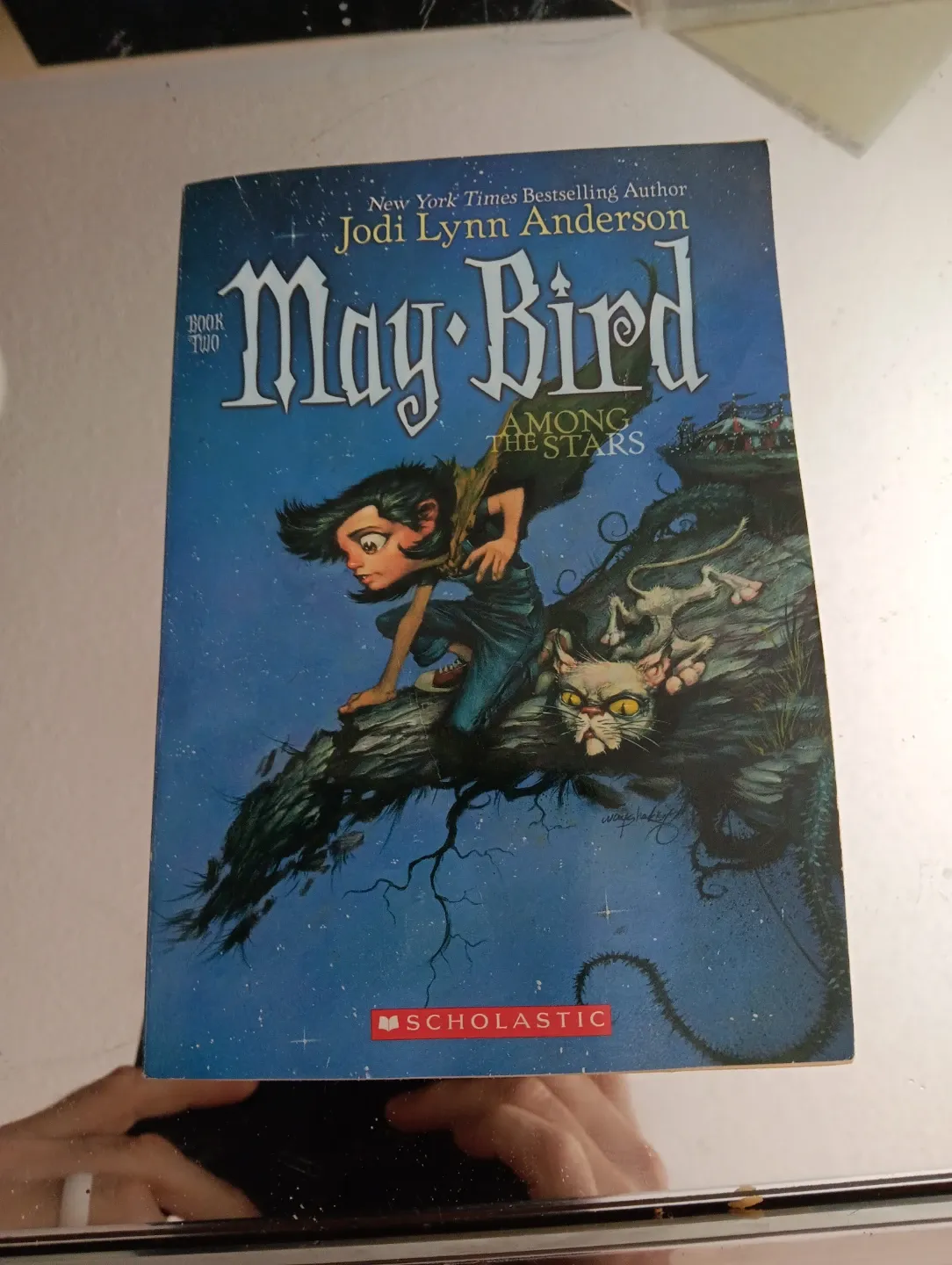 This is Book Two of the May Bird series, "May Bird Among the Stars," by New York Times bestselling author Jodi Lynn Anderson. It's published by Scholastic. This book is suitable for young readers who enjoy fantasy and adventure stories.
