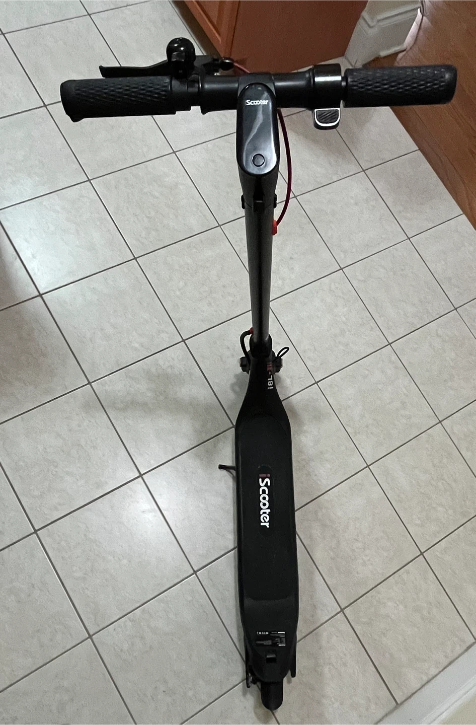 Selling a used iScooter i8L electric scooter in good working condition with 3 speed modes (10 km/h, 20 km/h, and 30 km/h), it rides smoothly and is great for commuting or short trips, it has a few small scratches from normal use that do not affect performance, comes with the charger, and the battery may need replacement in about 7 months.