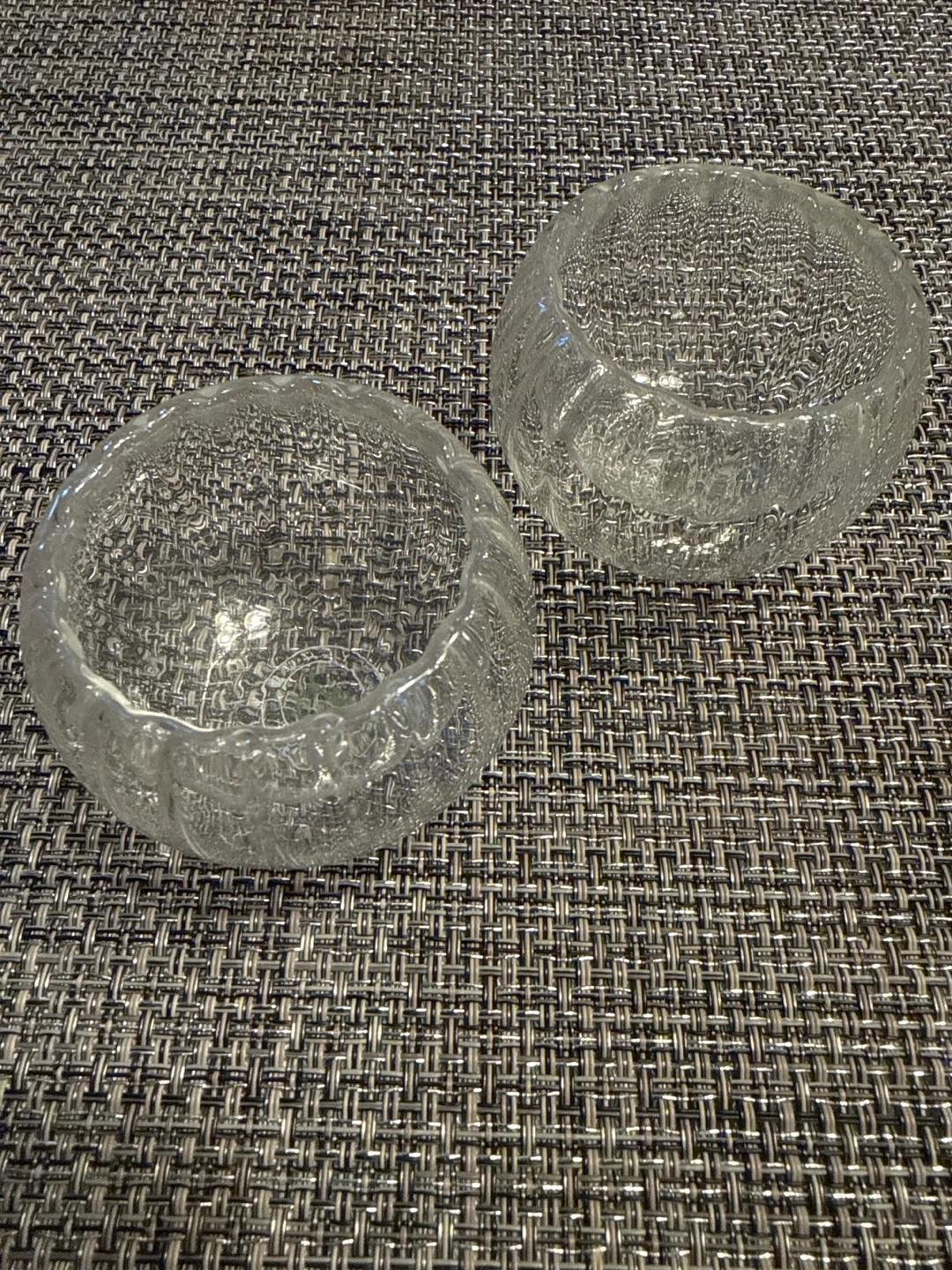 These new, clear glass cups are heat resistant. It's made of durable glass material. It's useful for serving small portions of tea or as a decorative piece.