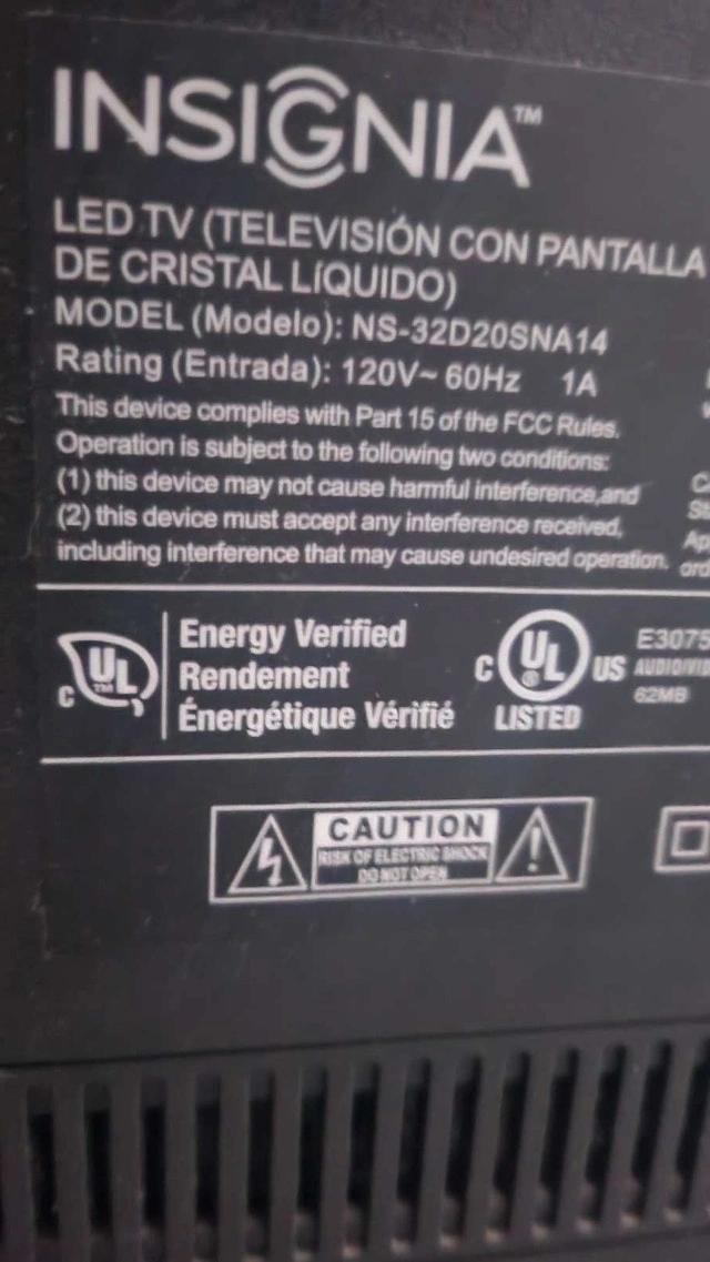 I'm selling a used Insignia 32" LED TV that's perfect for a smaller room or as an extra screen; it's in good condition. This TV features a clear LED display and standard definition resolution, making it great for everyday viewing. It has a sleek design that fits well in any space. Get ready to enjoy your favourite shows and movies on this reliable TV. Here are some details about the TV: