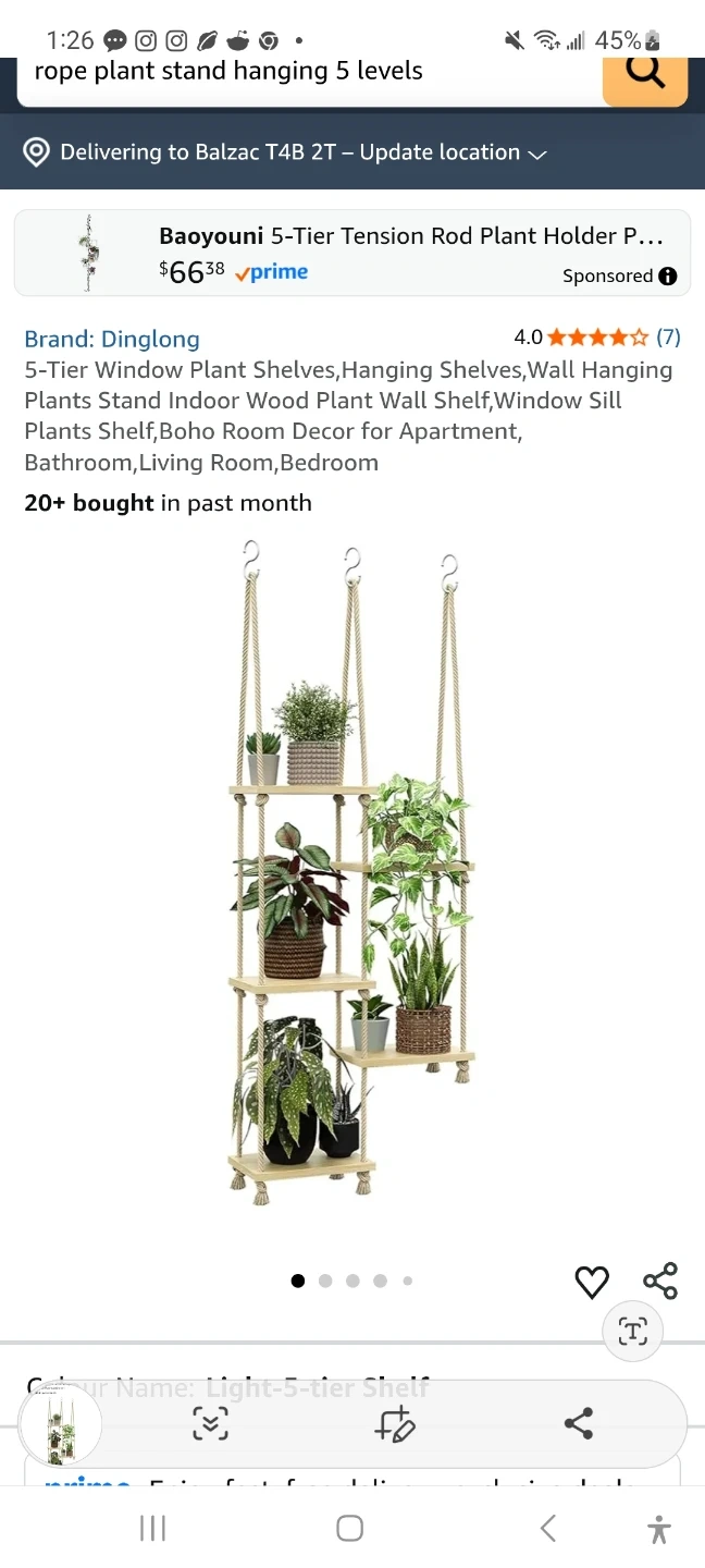 Buy & SellDinglong 5-Tier Rope Plant StandDinglong 5-Tier Rope Plant Stand$25This is a 5-tier hanging plant stand with wooden shelves. It's made of natural wood and rope. Assembly hardware is included.ConditionNewWHERE TO MEETCheck LocationView MapSELLERverifiedBobbyRouge23013 reviews0 chats·0 favorites·11 viewsSEND CHAT TO SELLERHi Bobby! I’m interested in your listing.Hi Bobby! I’m interested in your listing.Get the Karrot app to chatSign In to chat