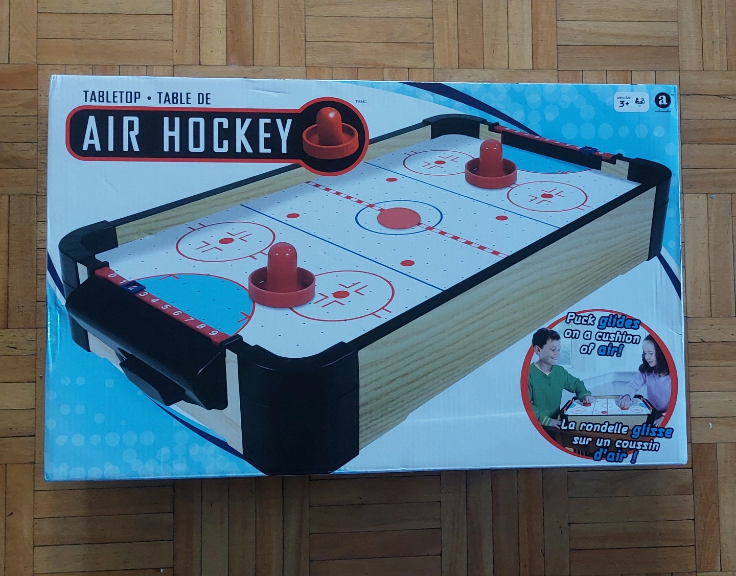Brand New tabletop air hockey game. Includes strikers and pucks. Fun for the whole family. Great for game night.