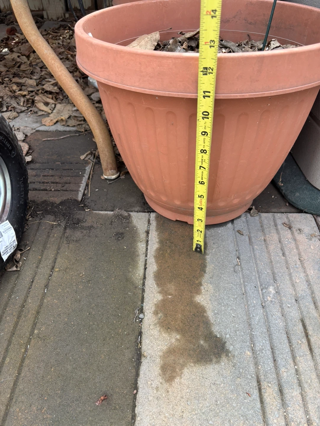 This terracotta-coloured plastic planter pot is 13 inches tall and has a fluted design. It's suitable for your garden or patio.
