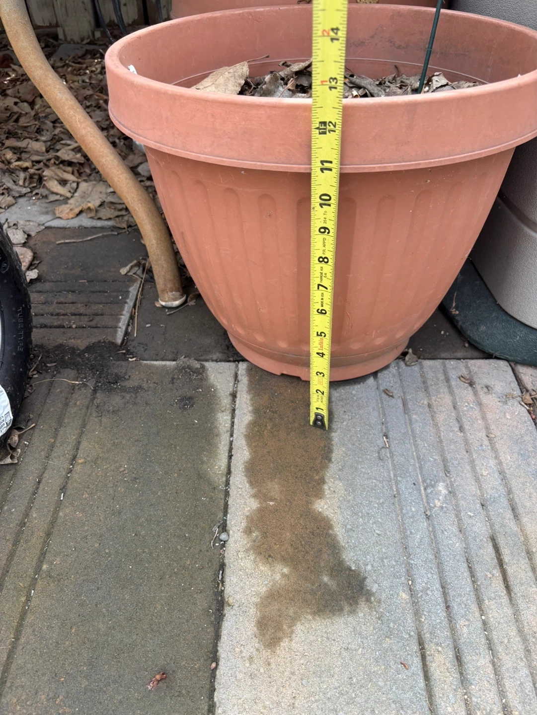 This terracotta-coloured plastic planter pot is 13 inches tall and has a fluted design. It's suitable for your garden or patio.