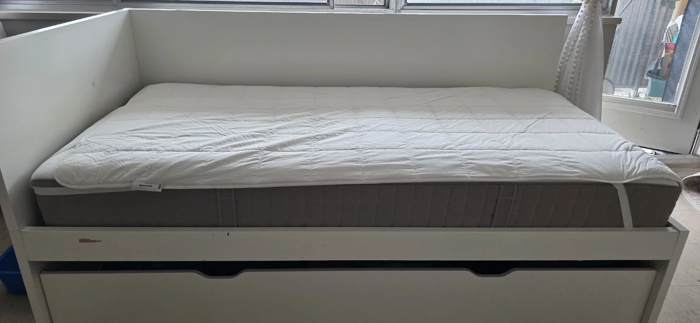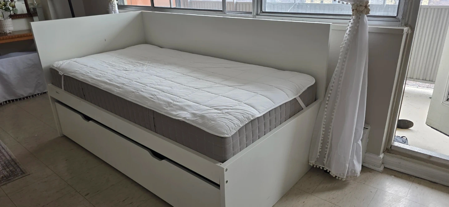 White Daybed with Trundle and Mattress with cover