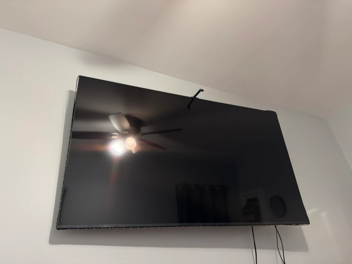 This is a black flat screen television. It's a modern design that'll look great in any room. The screen is large and offers a great viewing experience.