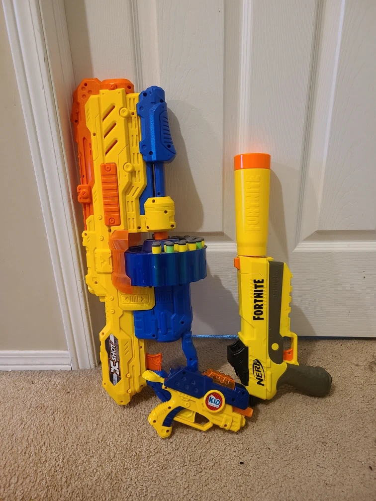 15selling nerf guns, a fun toy to play games with friends and family. you can buy as a bundle or individual prices are listed down below. Xshot- $30 Fortnite blaster- $30 Pistol-$5 PICK UP ONLY