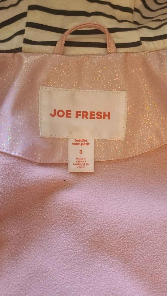 5Pink glittery rain jacket, size 3, Joe Fresh. Used but in perfect condition. Perfect use in rainy days for autumn. Pick up only Renfrew area.
