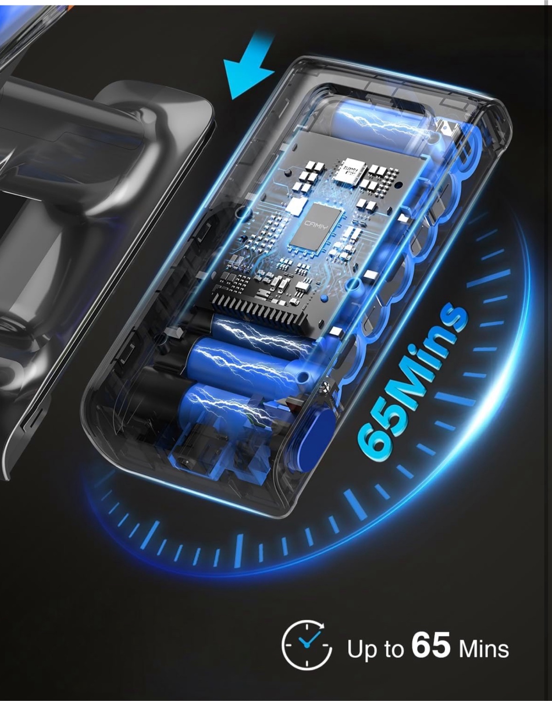 • Up to 65 minutes runtime