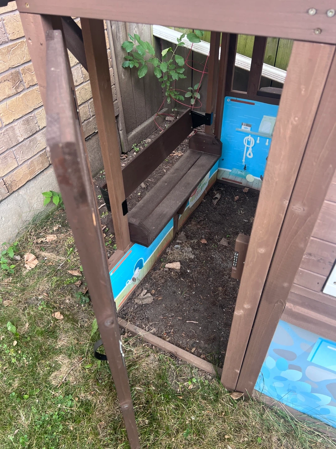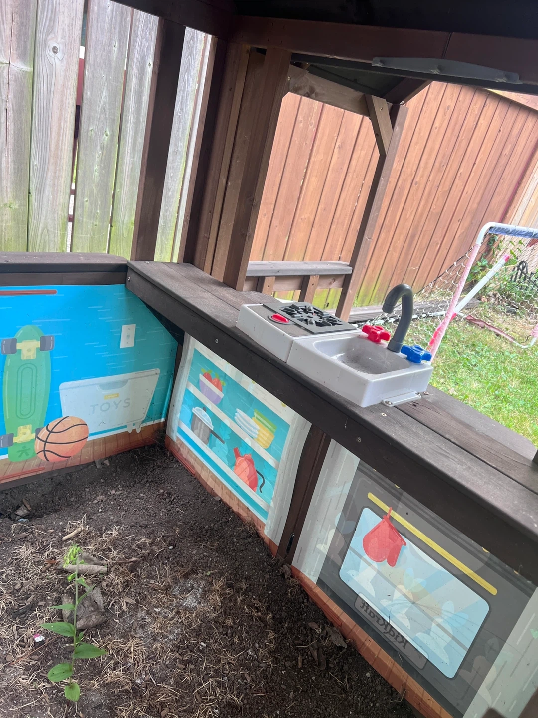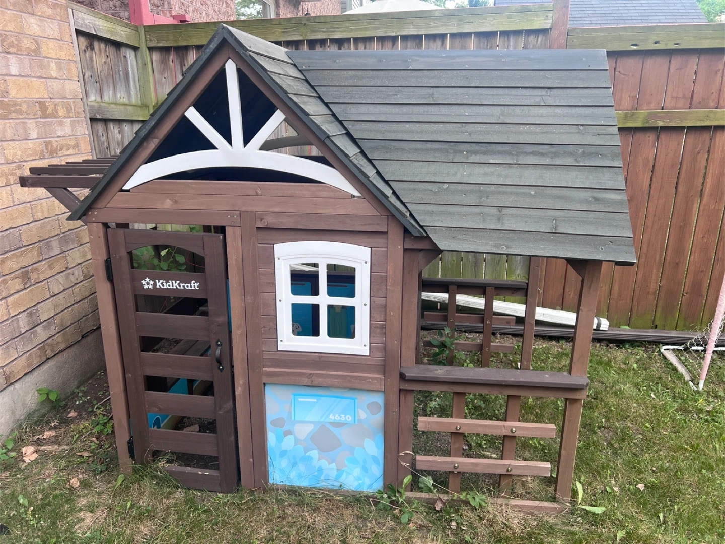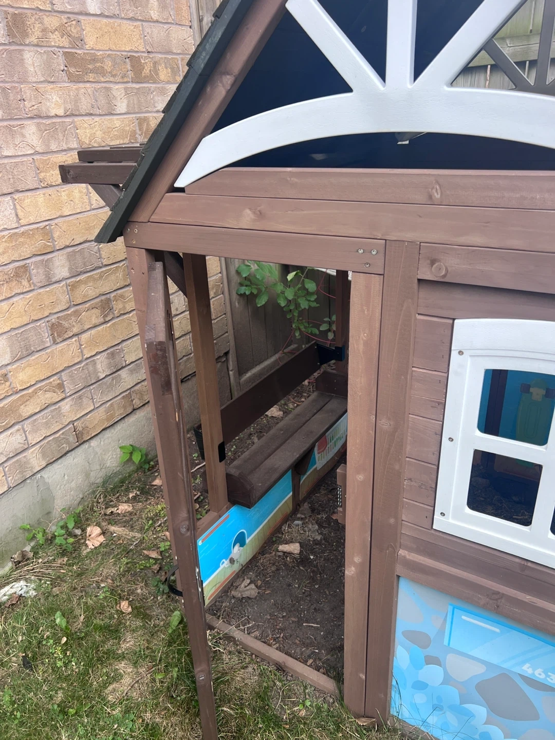 Selling a gently used KidKraft playhouse. It's a fun outdoor space for kids to play and explore! The playhouse features a cute design with a door, window, and a small kitchen area inside. It's perfect for imaginative play and keeping the little ones entertained in the backyard.