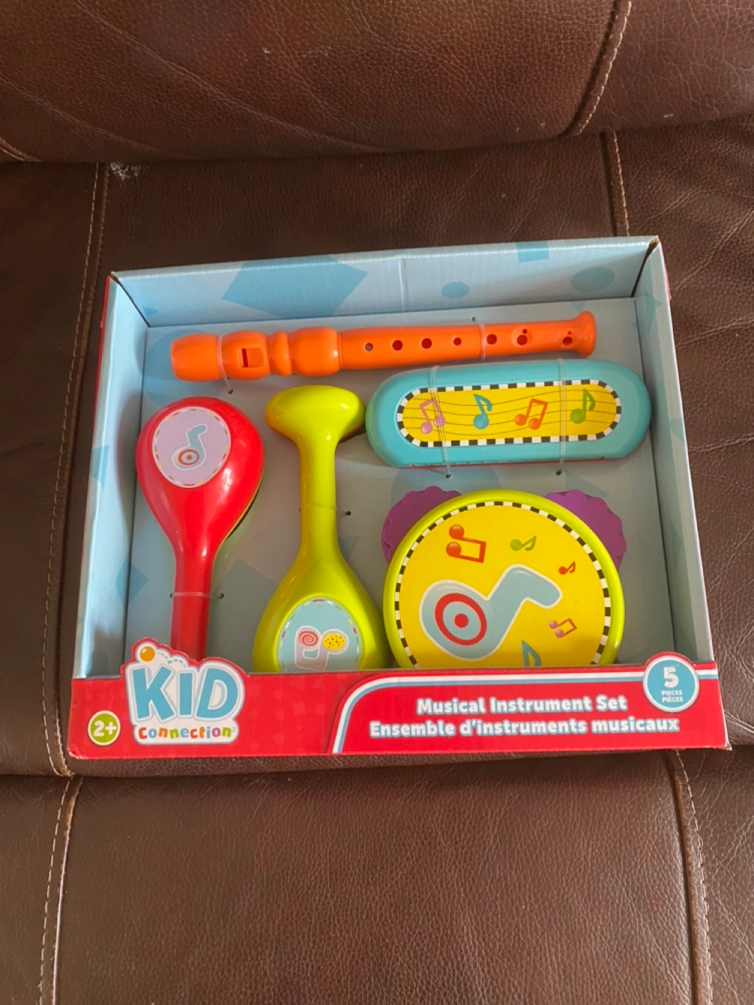 New in box. Includes tambourine, maracas, recorder, and more. Fun for kids! Pickup from Yonge and college