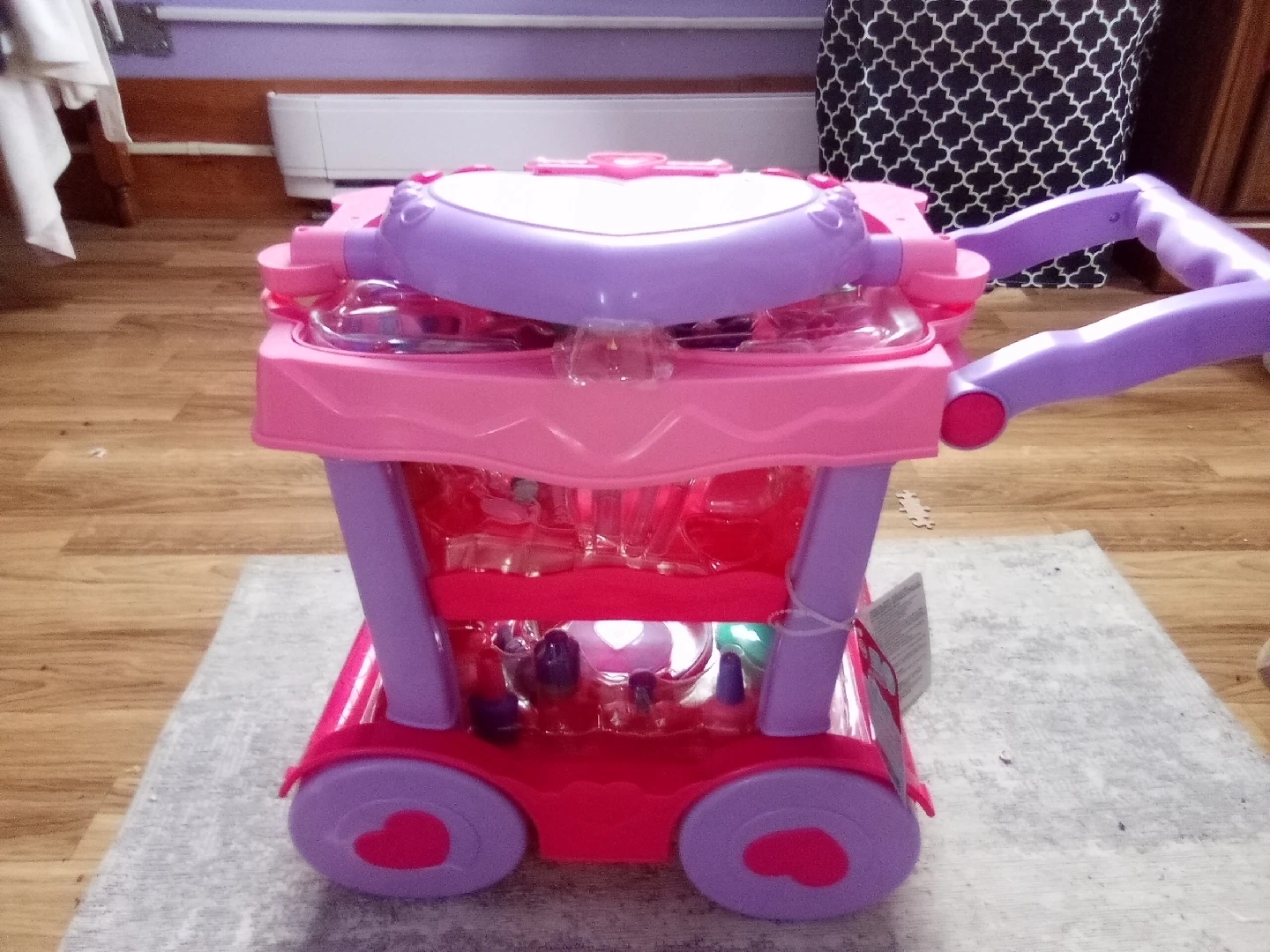 5Kids Beauty Cart with light and sound.Hair and makeup accessories. It is brand new has never been used.Would make a great Christmas gift for a little girl!