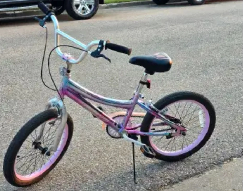 Selling a cute kids' bike in a mix of purple and silver colours. It's in good used condition and ready for a new rider! Perfect for learning to ride around the neighbourhood or at the park