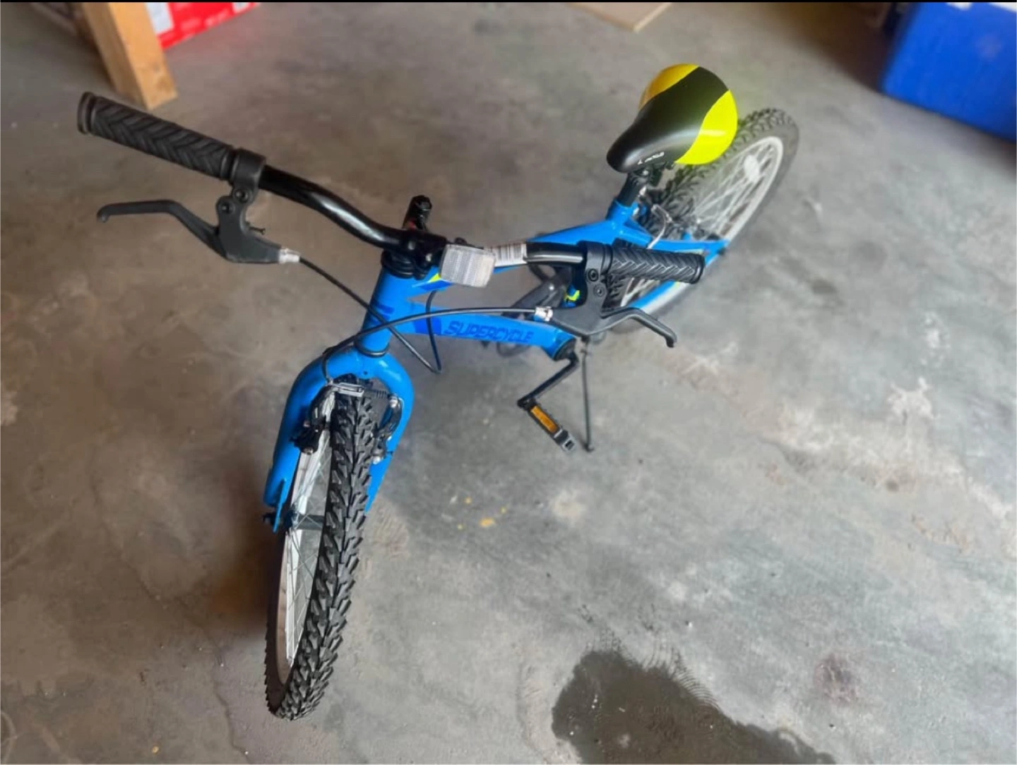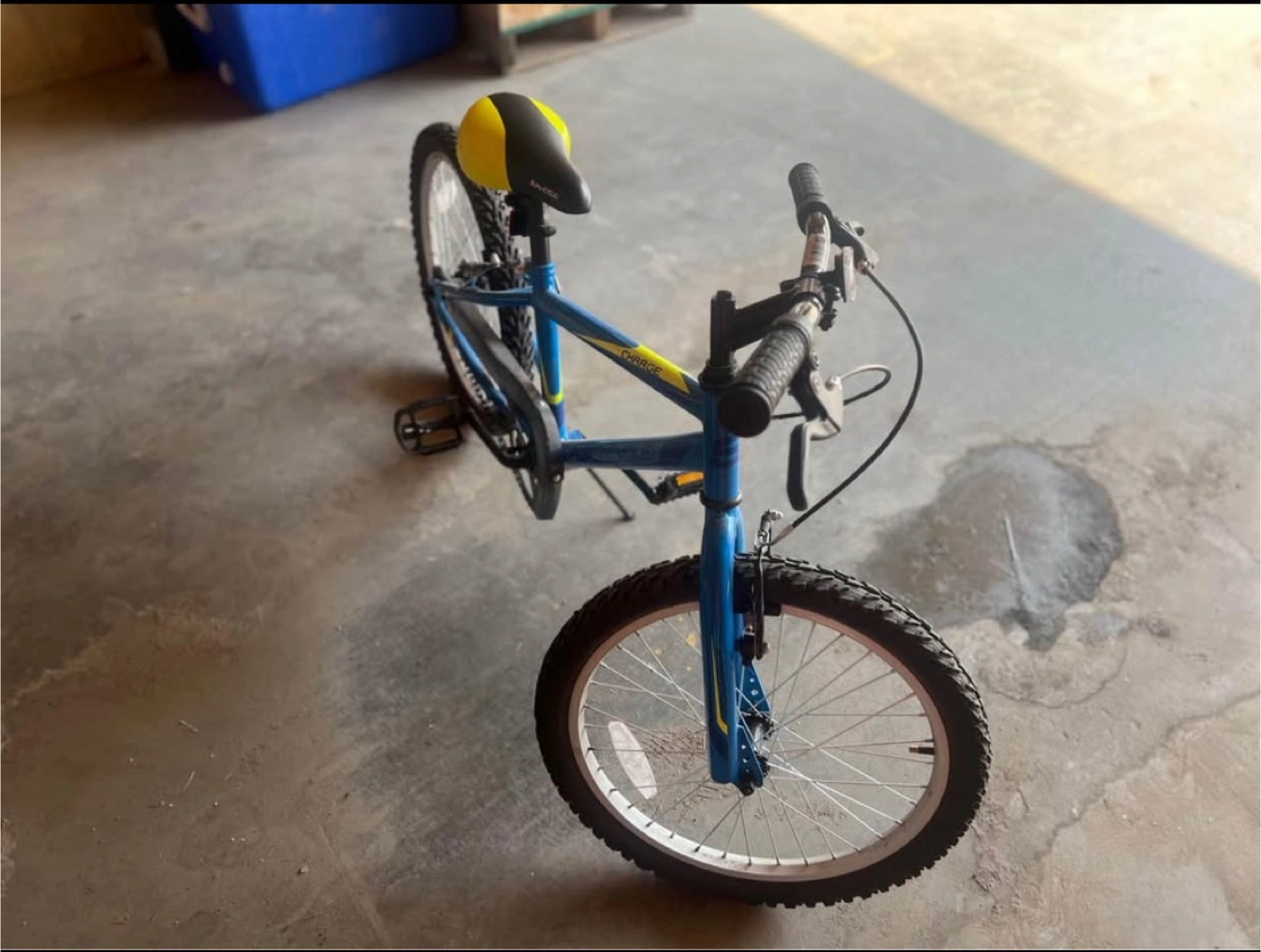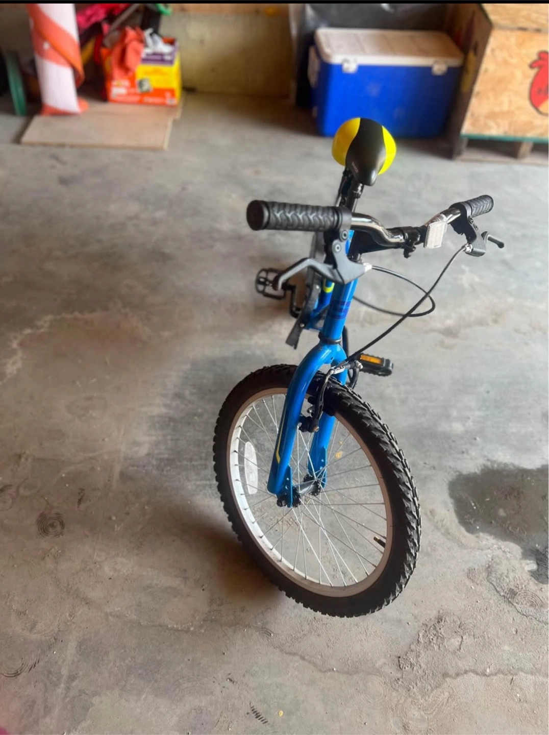 Used children's bike. Blue frame, yellow accents. Good condition. Ready to ride!