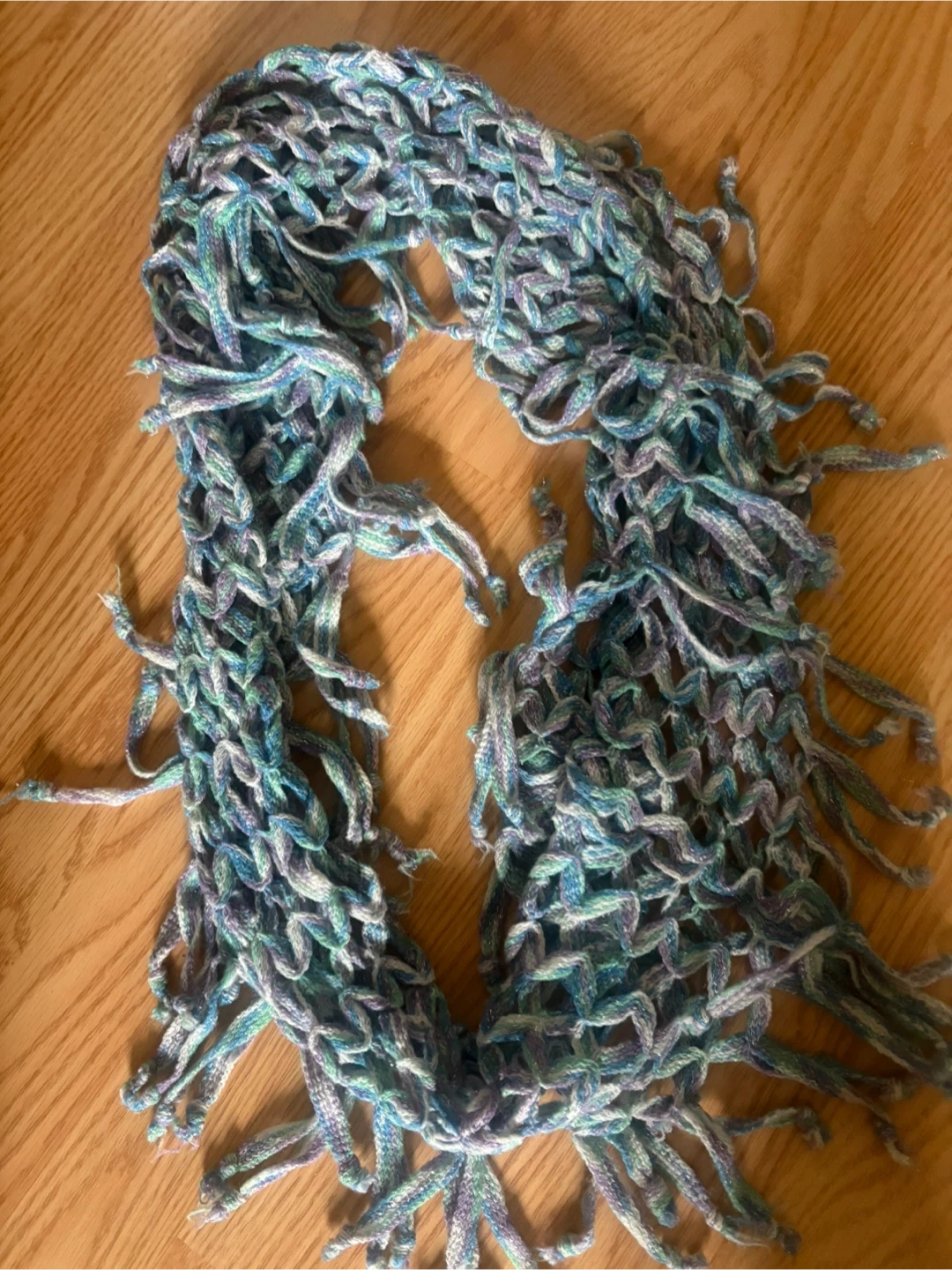 10Selling a braided scarf with a lovely mix of blue and purple colours! It's in great condition and would be a cozy addition to any outfit