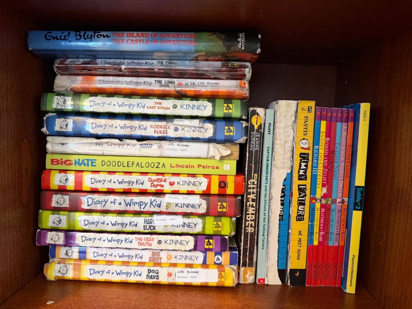 21Selling a collection of kids' books, including: - Diary of a Wimpy Kid series by Jeff Kinney (various titles) - Big Nate: Doodlepaloza by Lincoln Peirce - The Island of Adventure & The Castle of Adventure by Enid Blyton - Captain Underpants and the Attack of the Talking Toilets by Dav Pilkey - City of Ember by Jeanne DuPrau - Timmy Failure: We Meet Again - Sudoku 2 - Plus more!
