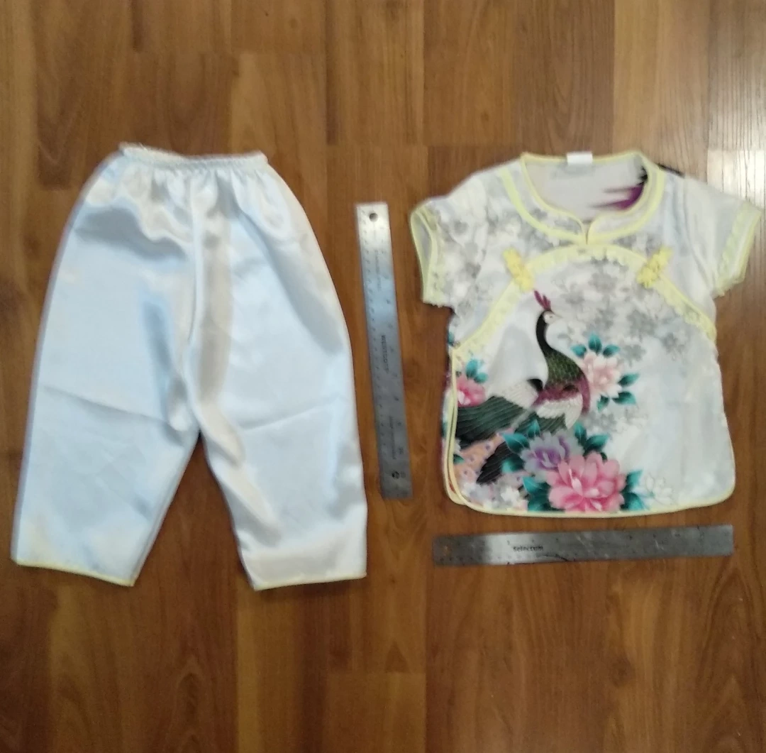 90Selling a cute little two-piece outfit! It has a Chinese-style design with a top featuring a peacock and floral print, and matching white pants. Perfect for a special occasion or Halloween costume. Porch pick up near Hume Park in New Westminster.