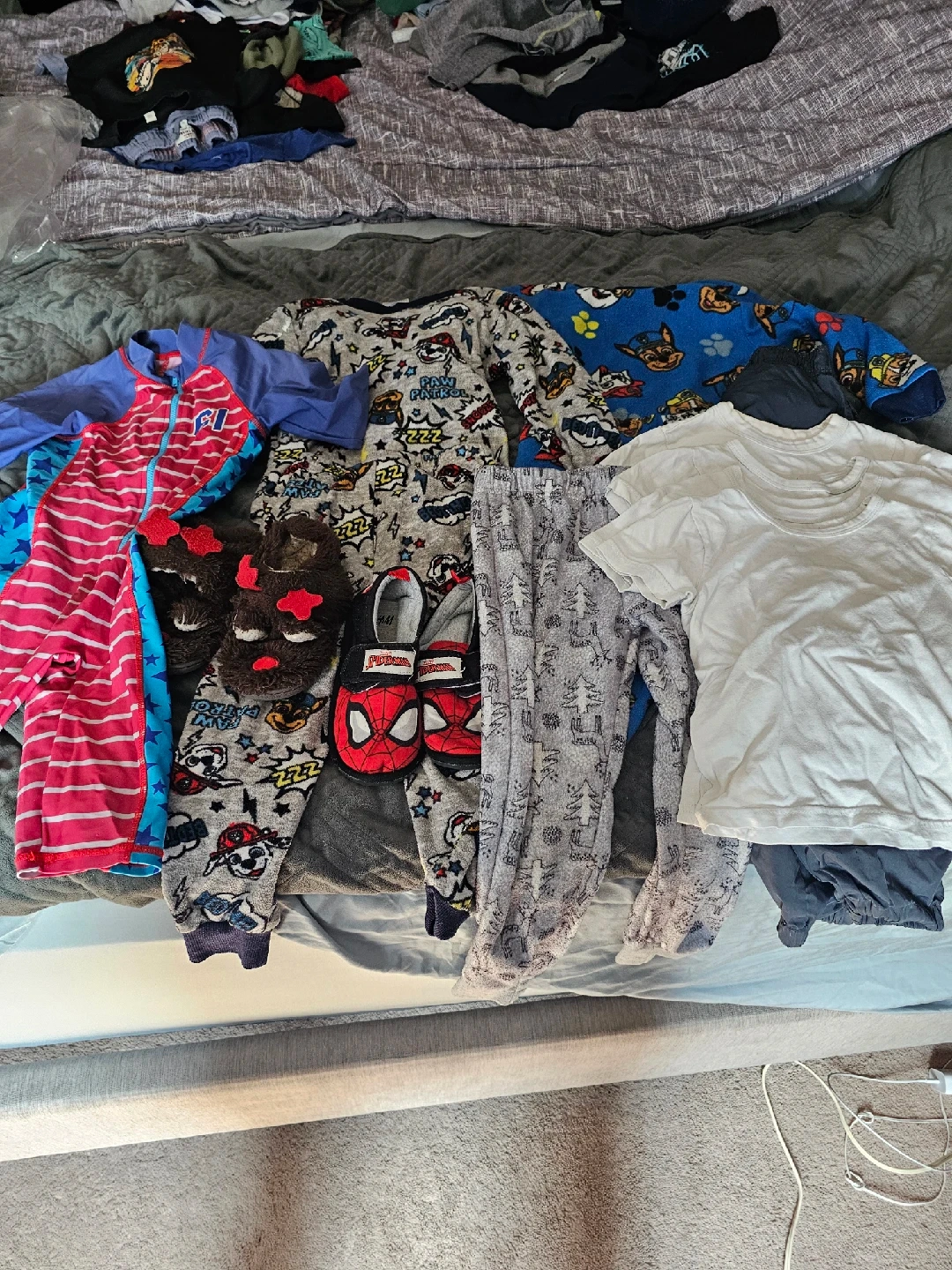 70Selling a bundle of kids' clothing. There's a mix of pyjamas, shirts, pants, and more. Great for stocking up on essentials!