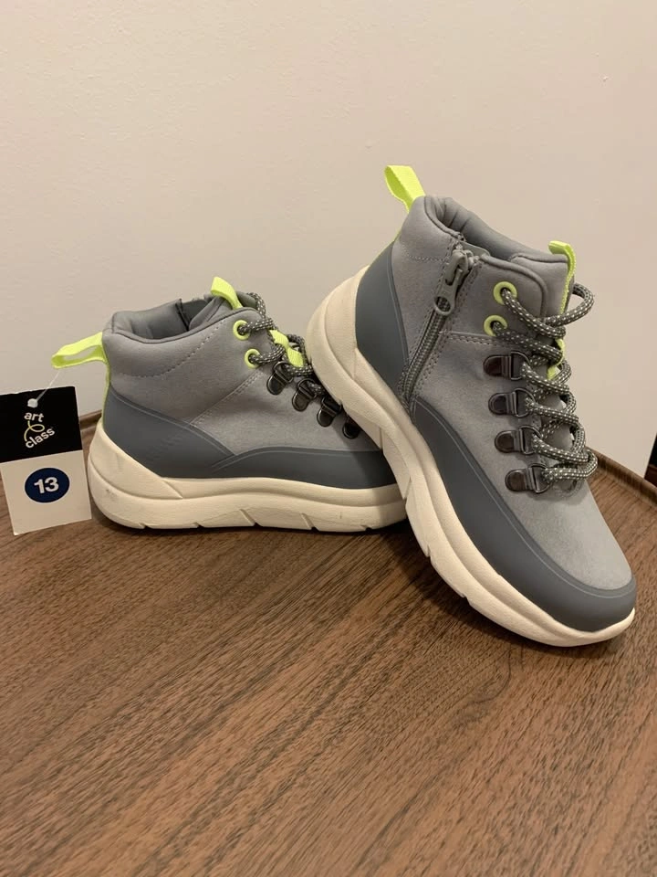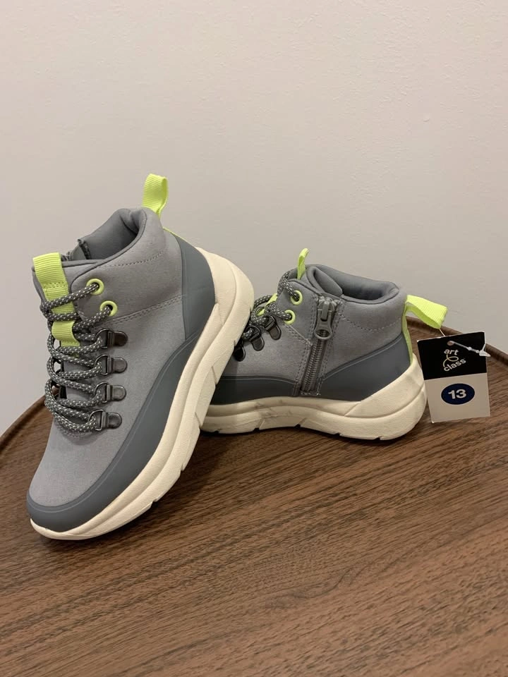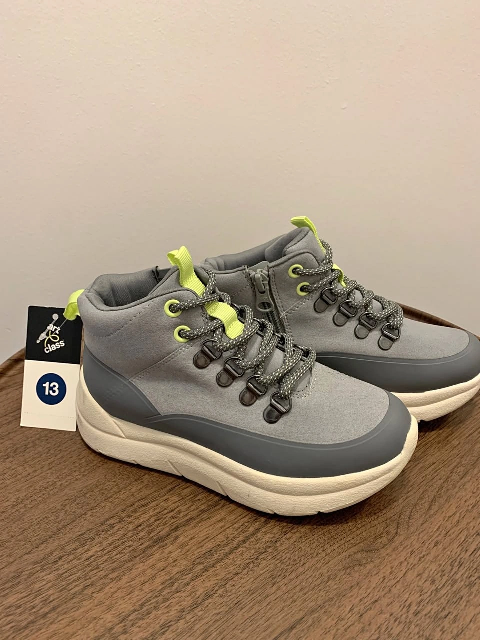 10Art Class Crew Hiker Sneakers Boots Kids Charcoal Gray Ankle Side Zip Lace Up