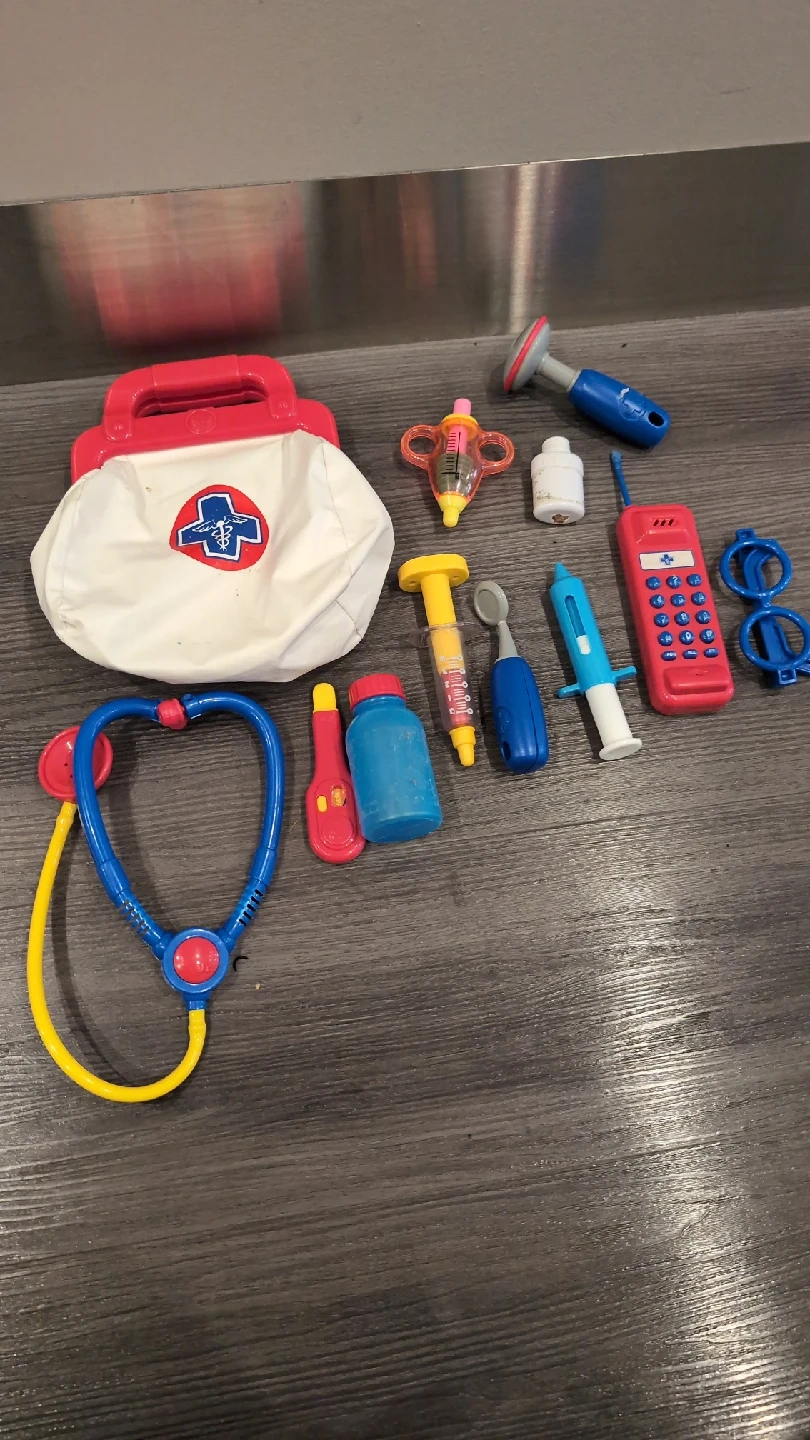 97A fun doctor play set for kids! Includes a stethoscope, toy phone, and other doctor tools in a handy carrying bag. Perfect for imaginative play!