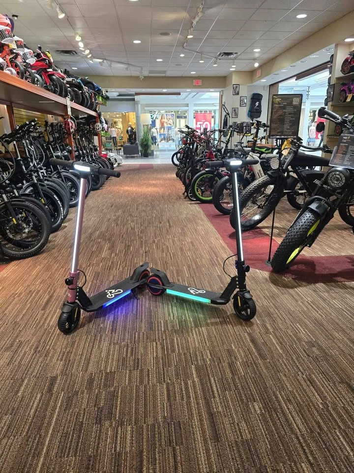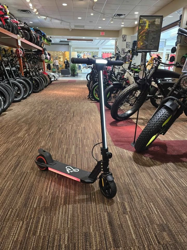 65Kids electric fun Speed :12km/hr Range: 10km Brake: electronic brake & foor brake Light, front, and base LED Foldable: Yes Display: LCD Age: 5-10 years Max load 80 Lbs Available in Pink or Black colors.