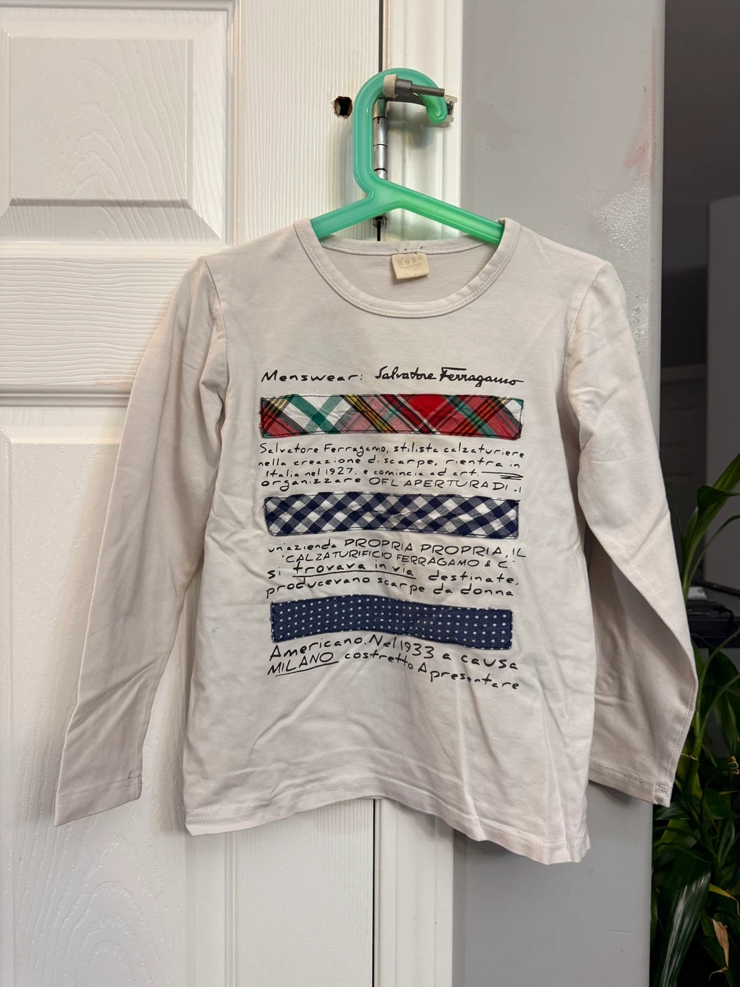 25A long-sleeve shirt Features a unique design with text and patterns. Perfect for adding a touch of designer flair to your wardrobe!