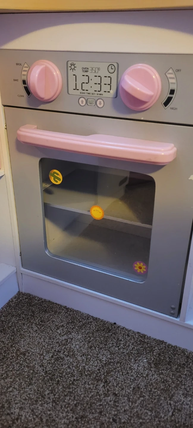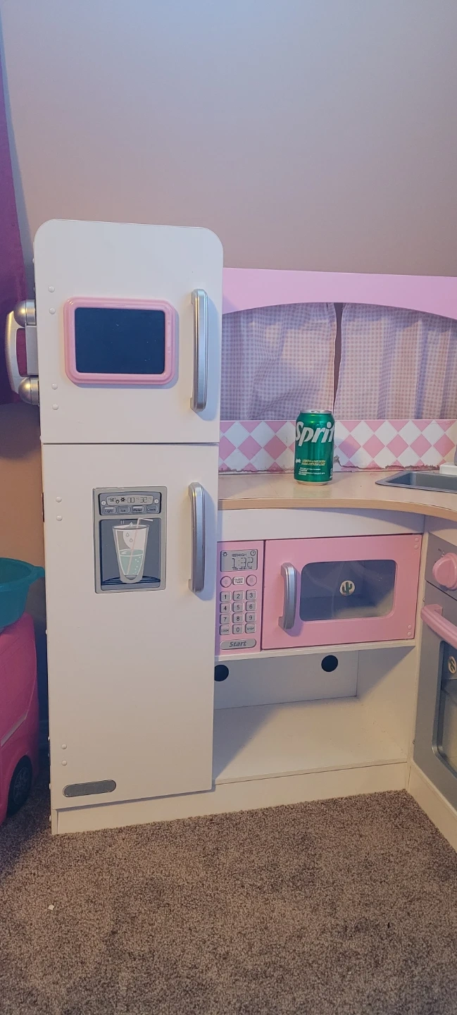 70This adorable pretend play kitchen is perfect for little chefs! It features a refrigerator, microwave, oven, stovetop, sink, and washing machine. Great for hours of imaginative fun!