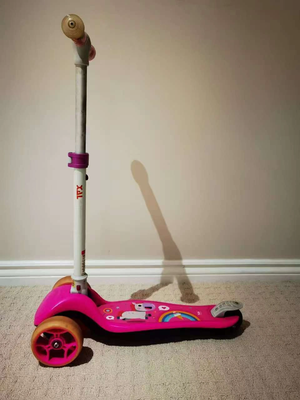 5Pink children's scooter. Three wheels. Adjustable height. Unicorn design. Good used condition.