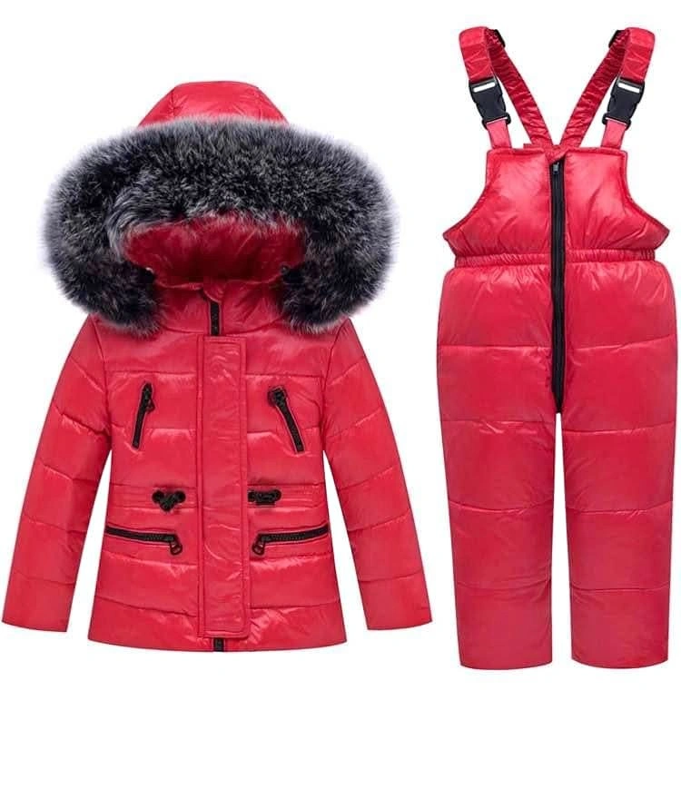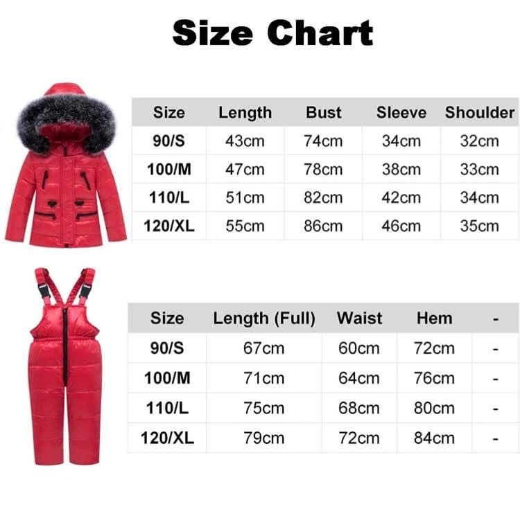 5Two-piece Ski Suits Set --- 1 x Puffer Jacket + 1 x Snowpants. Perfect for daily wear, Birthday Gift, Outdoor Activities such as snow play, snowboard, ski, snowballing. ect. Hooded Down Jacket --- Removable fur storm hood, elastic cuffs, zipper pockets. the windproof and waterproof polyester shell fabric, protect your child from the snow and rain. Bib Snowpants --- Adjustable shoulder straps with quick-release buckles, full zip-up front, elastic waist and leg openings. Protect your child effectively in cold days. Size 120/XL, but fits 3-4 yo.