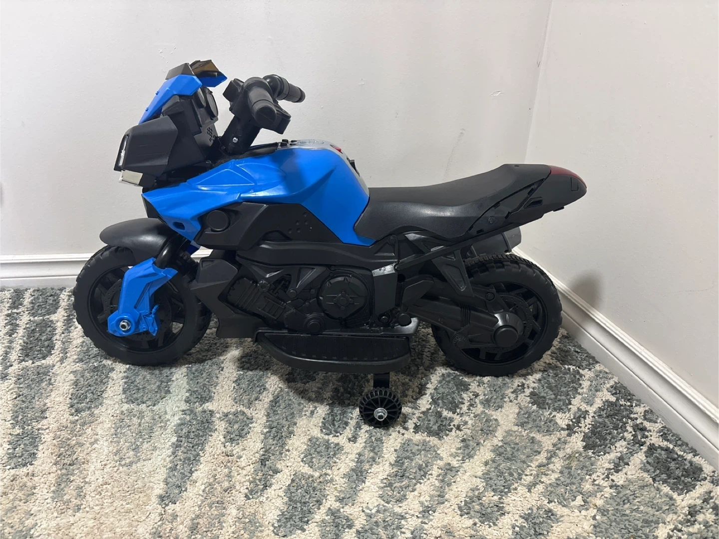 5Selling a fun blue ride-on motorcycle for kids! It's in great shape and ready for a new little rider to enjoy. Perfect for cruising around the driveway or backyard!