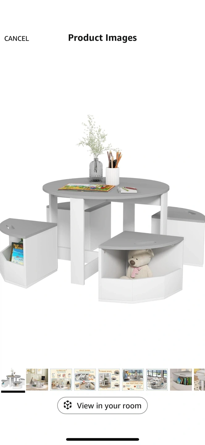 10This kids' round table set is perfect for playtime, snacks, and learning! It comes with four storage stools, so there's plenty of space for books, toys, and other treasures. Keep your little one's space tidy and organized with this versatile set.