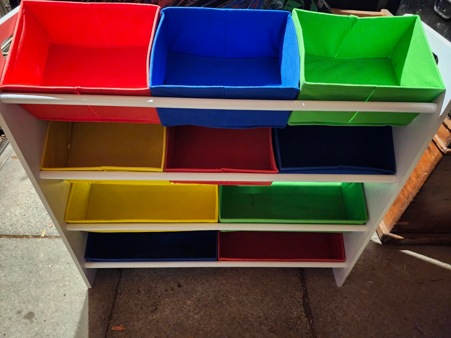 1000+Selling a kids' storage shelf complete with colourful bins! It's perfect for organizing toys, books, and other kiddo essentials. The bins are in red, blue, green, yellow, and more!