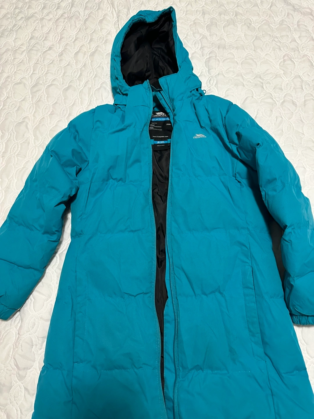 Teal blue winter jacket with a hood. Waterproof and windproof. Caloheat insulation. In perfect condition.