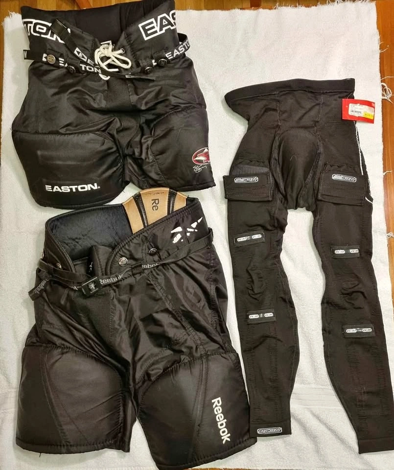 1) Easton Hockey Shorts. Youth Size large. Measures, 24" - 26". $30.00 2) Reebock Hockey Pants. Junior medium. Measures 24" - 27" $30.00. 3) EC3D Hockey Leggings size 1. New and unused with Tags intact. Paid $175.00 at Mallards Source for Sports Asking $100.00 Located in Montrose and can possibly meet Downtown Trail Check out my other listings for Hockey gloves, elbow pads and shoulder pads.