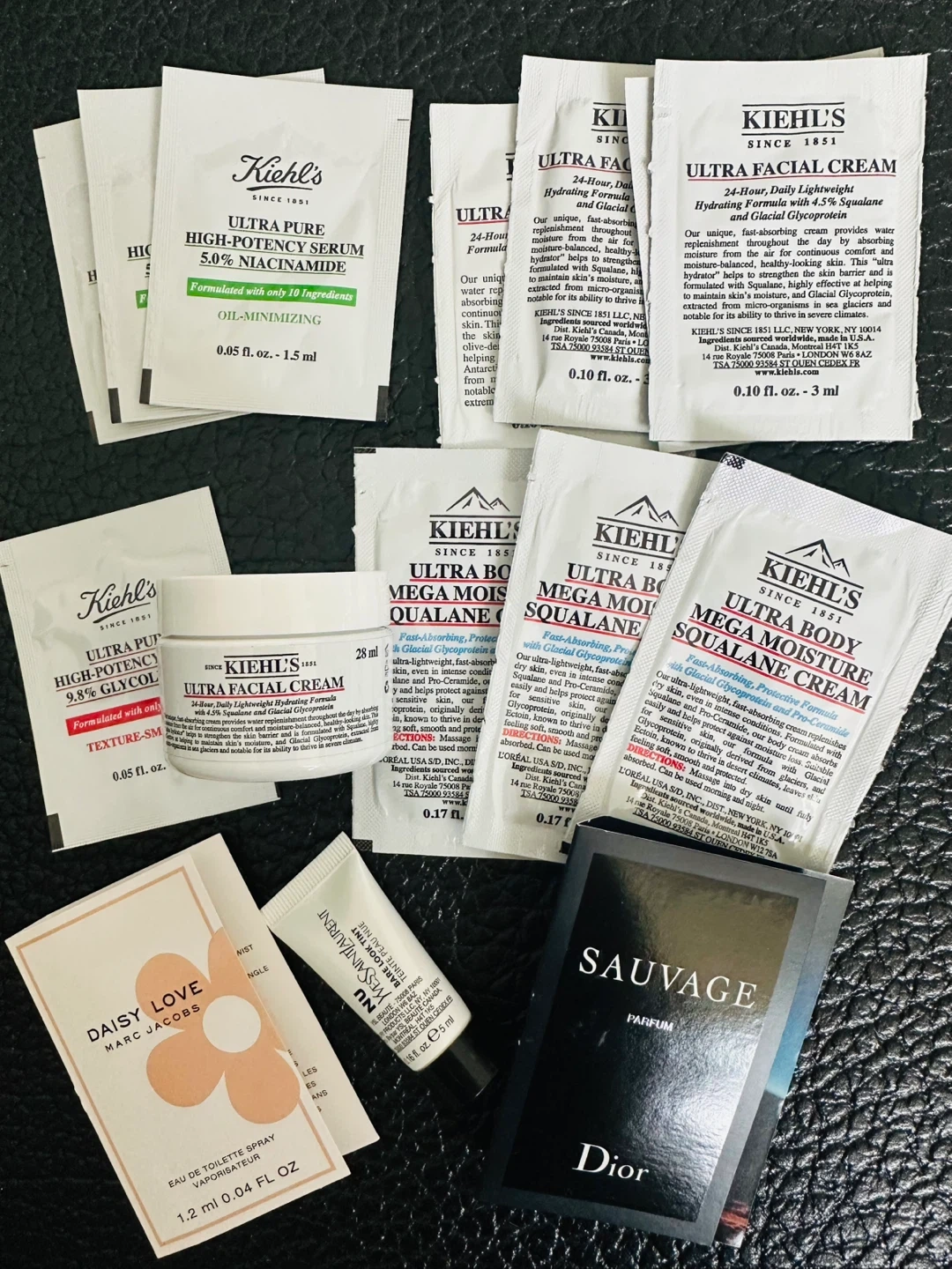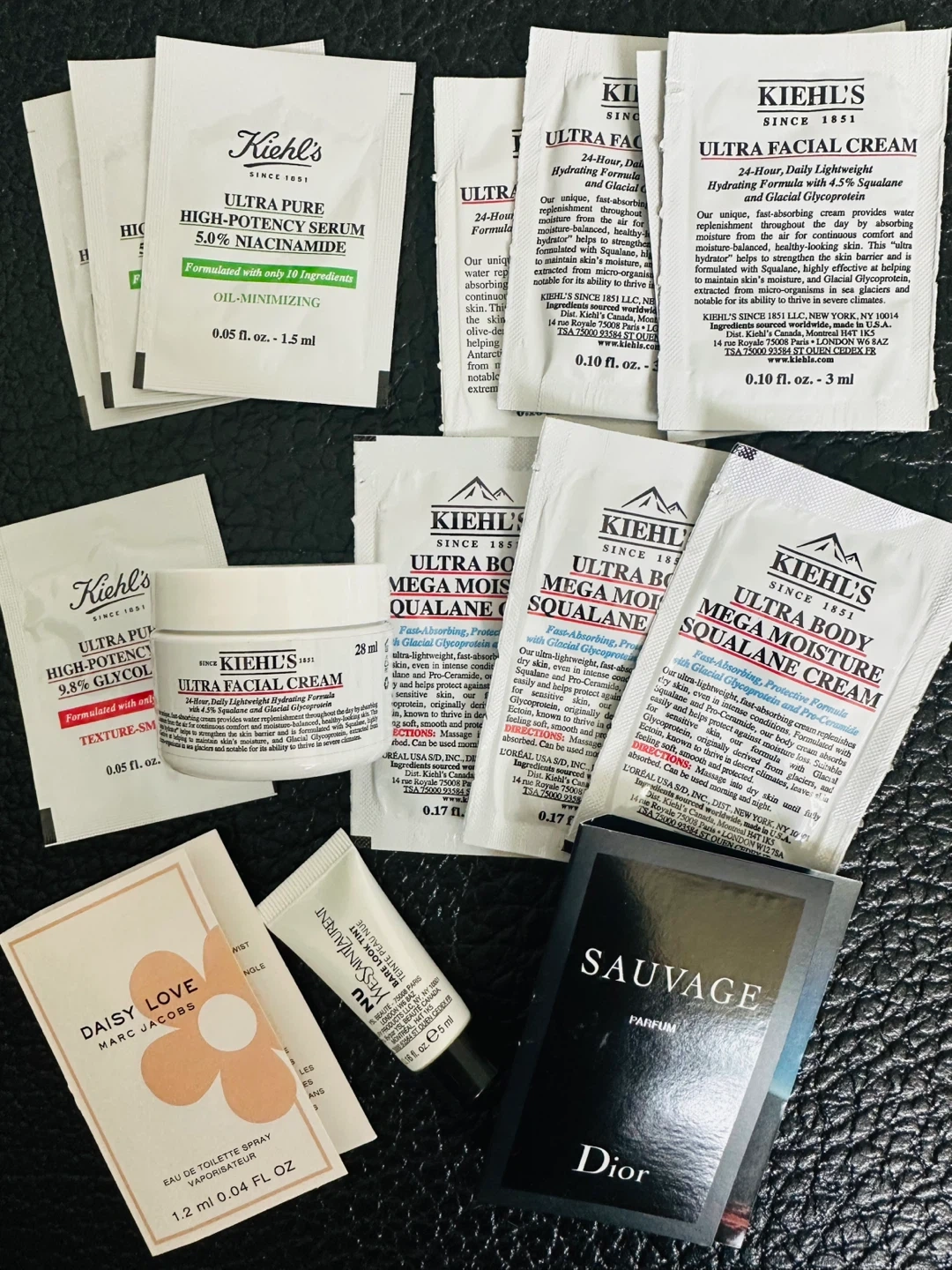 1000+I'm selling Kiehl's Ultra facial Moisture Squalane Cream! This cream is highly rated for absorption, non-greasiness, and softness. It comes in a 28ML size. Also included are some sample sizes of Kiehl's Ultra Facial Cream and Kiehl's Ultra Pure High-Potency Serum, as well as samples of Daisy Love Marc Jacobs and Dior Sauvage!