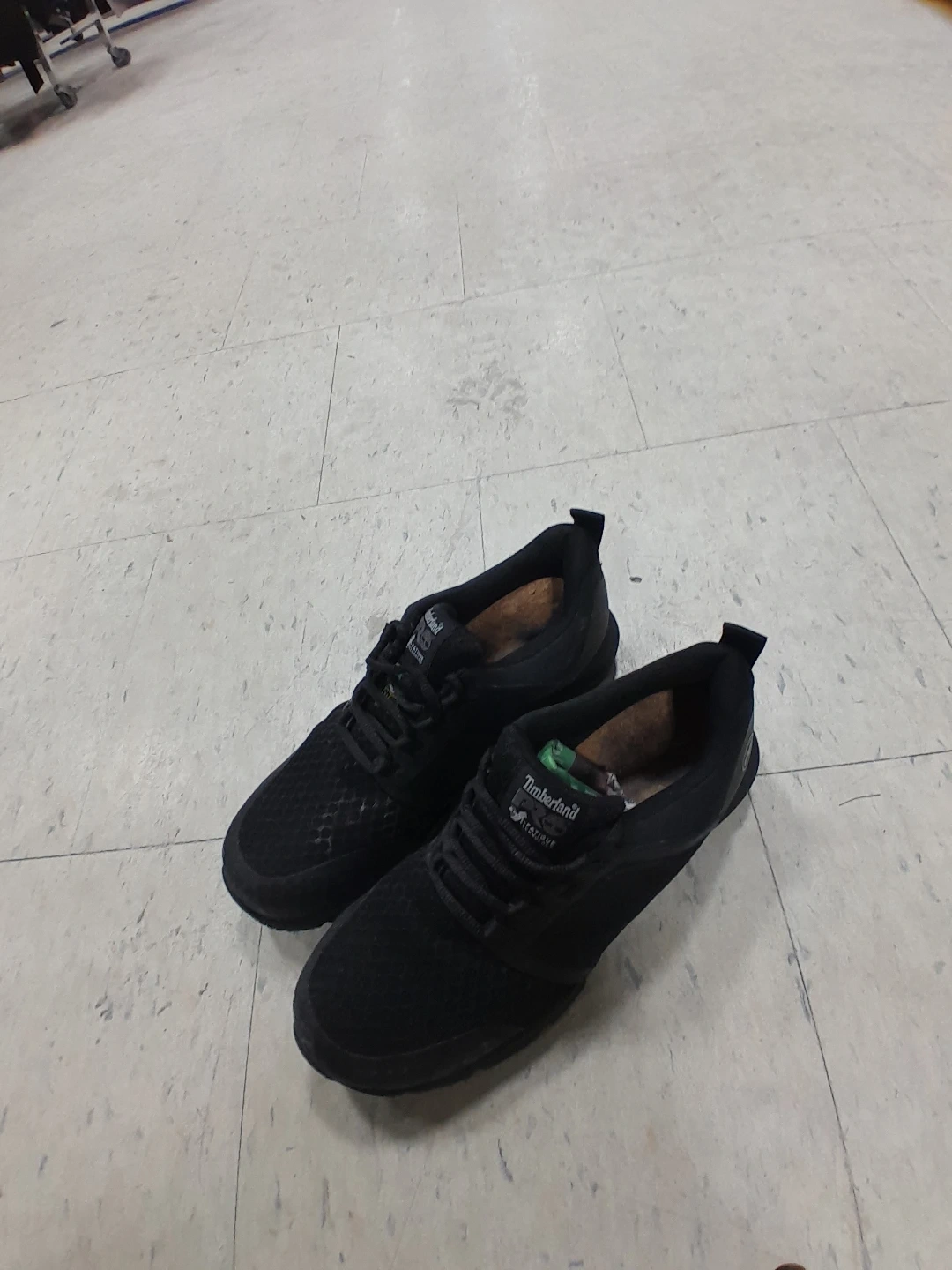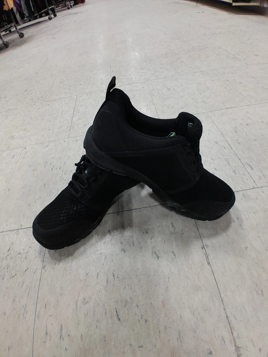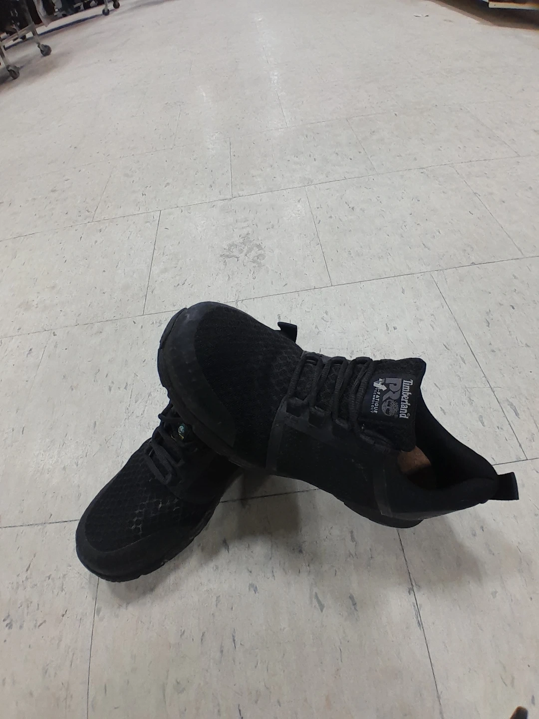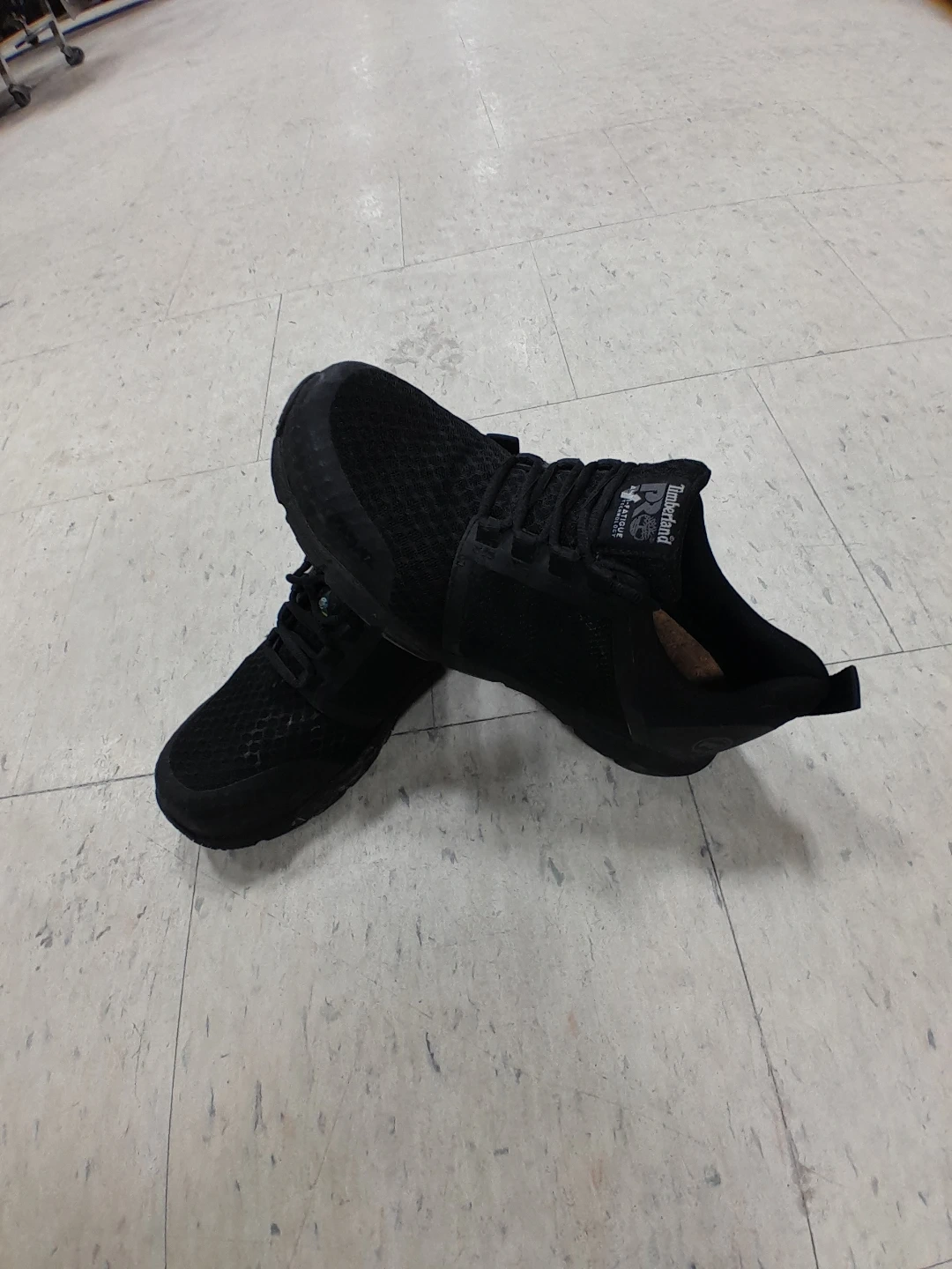 Timberland PRO black Safety shoes. They're a sturdy and reliable pair for demanding environments. This footwear offers durability and comfort for long workdays. Men's Size 8.